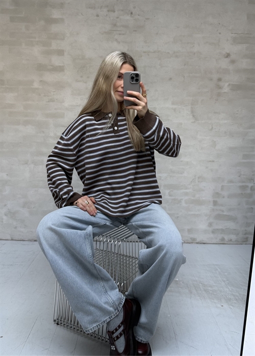 Adanne stripe polo bluse Brown/Blue Boii Studios