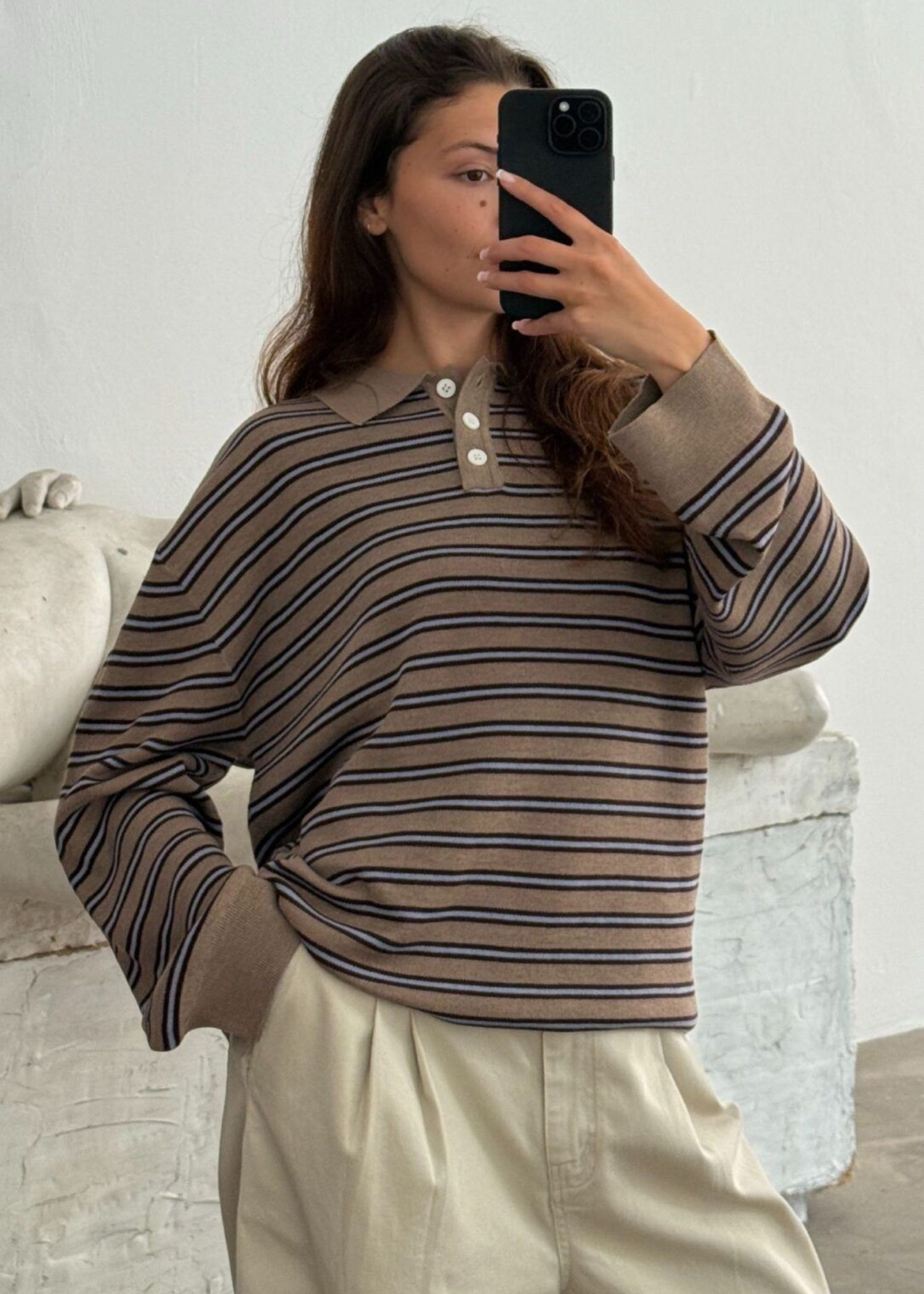 Adanne stripe polo bluse Beige/Bordeaux Boii Studios