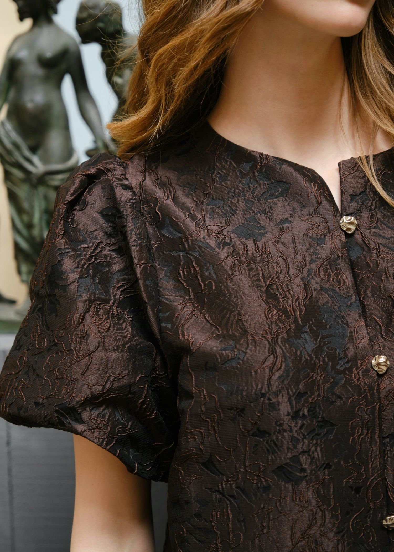 Aisa brocade bluse Mørkebrun Neo Noir