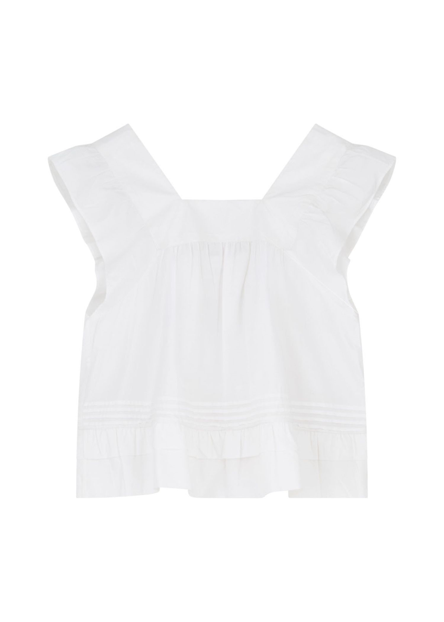 Hvid feminin top fra Skall i 100% bomuld med en løs bred pasform.