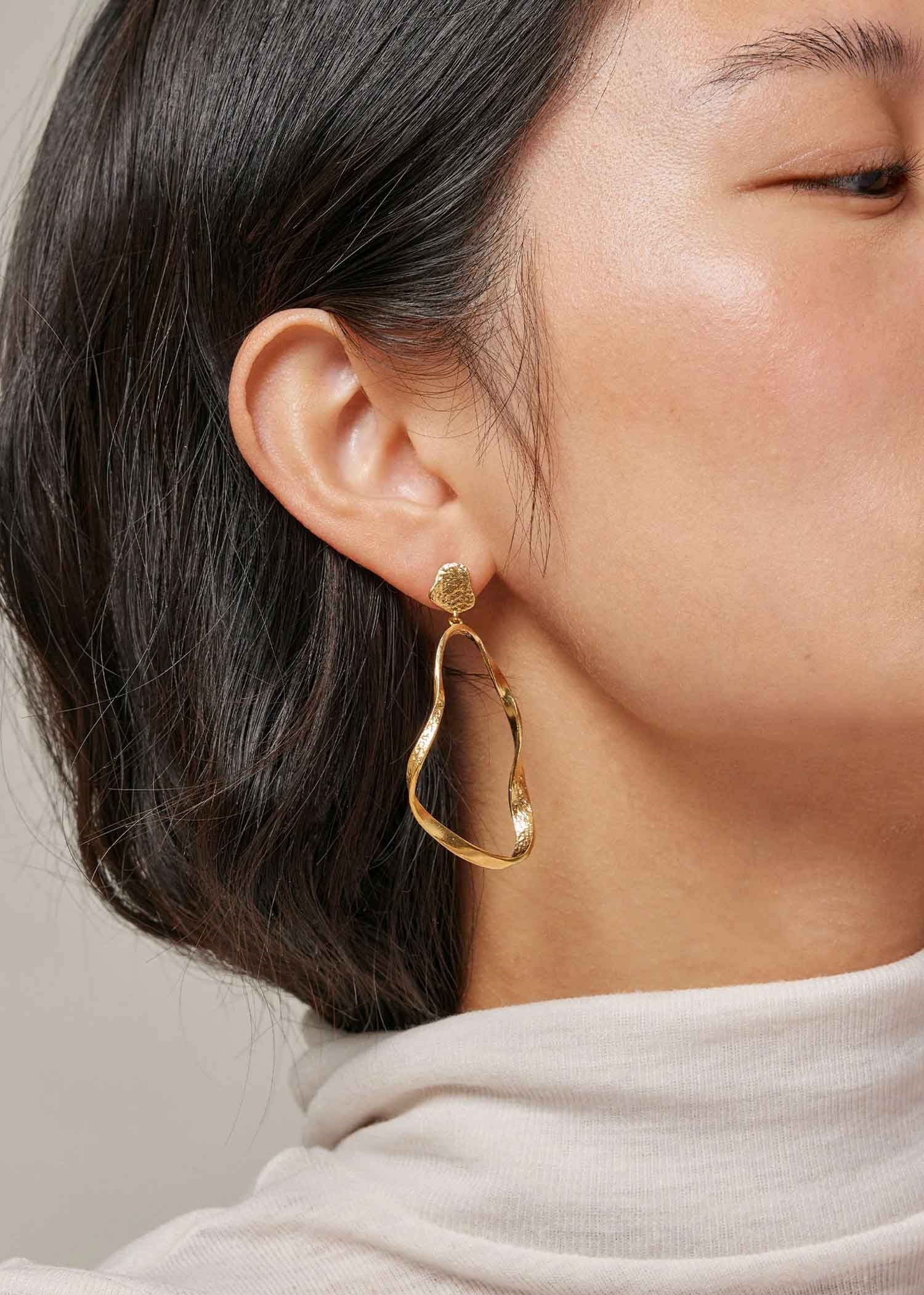 Enamel's 18 karats guldbelagte Aloma øreringe har et slankt, voluminøst udtryk, med en lethed over sig, der gør disse øreringe til noget helt særligt. Aloma øreringenes artistiske og eksklusive udformning, tilegner dig et par alsidige øreringe, du kan bruge til de fleste lejligheder. Aloma Large er store og legende i deres design. De bølgende flader skaber et dynamisk og levende udtryk, og gør den store ørering uundværlig til den næste festlige lejlighed.