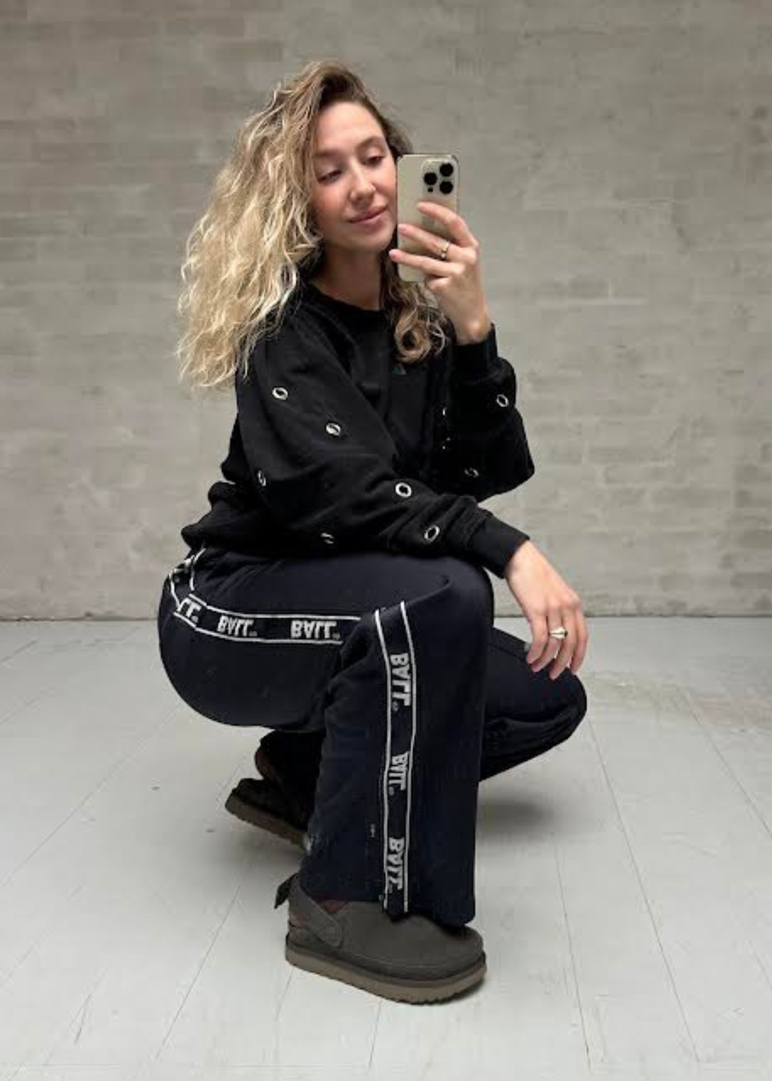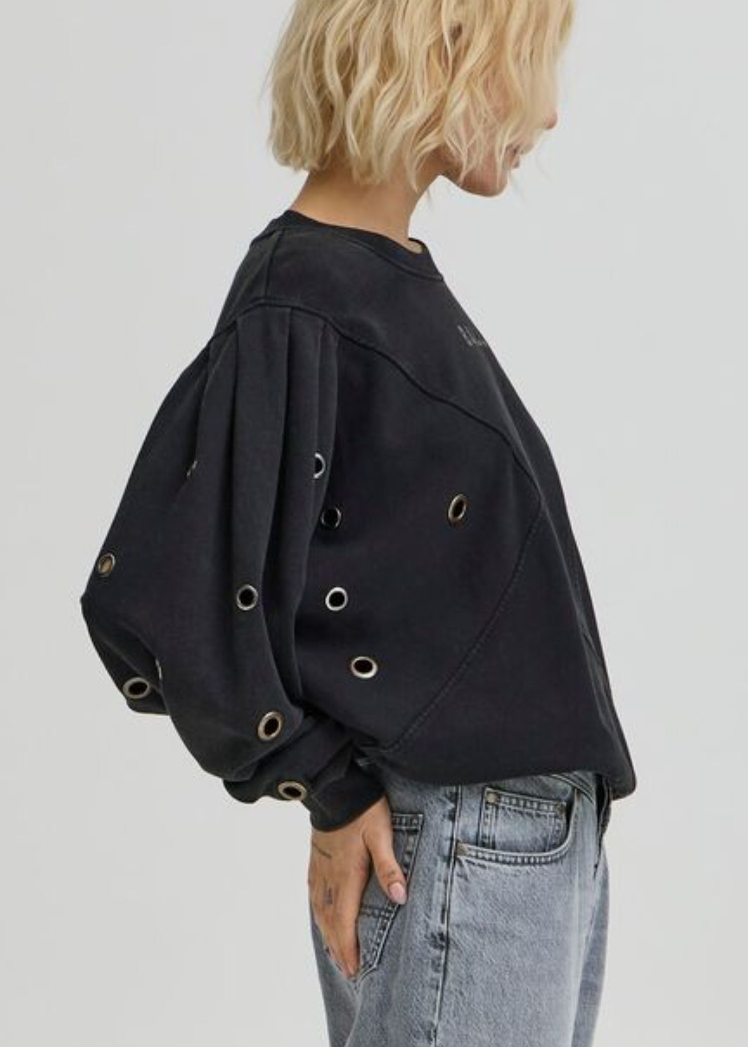 Sort bomulds sweat fra Ball med løst fit, flagermus ærmer, samt ring/nitte detaljer på ærmer.