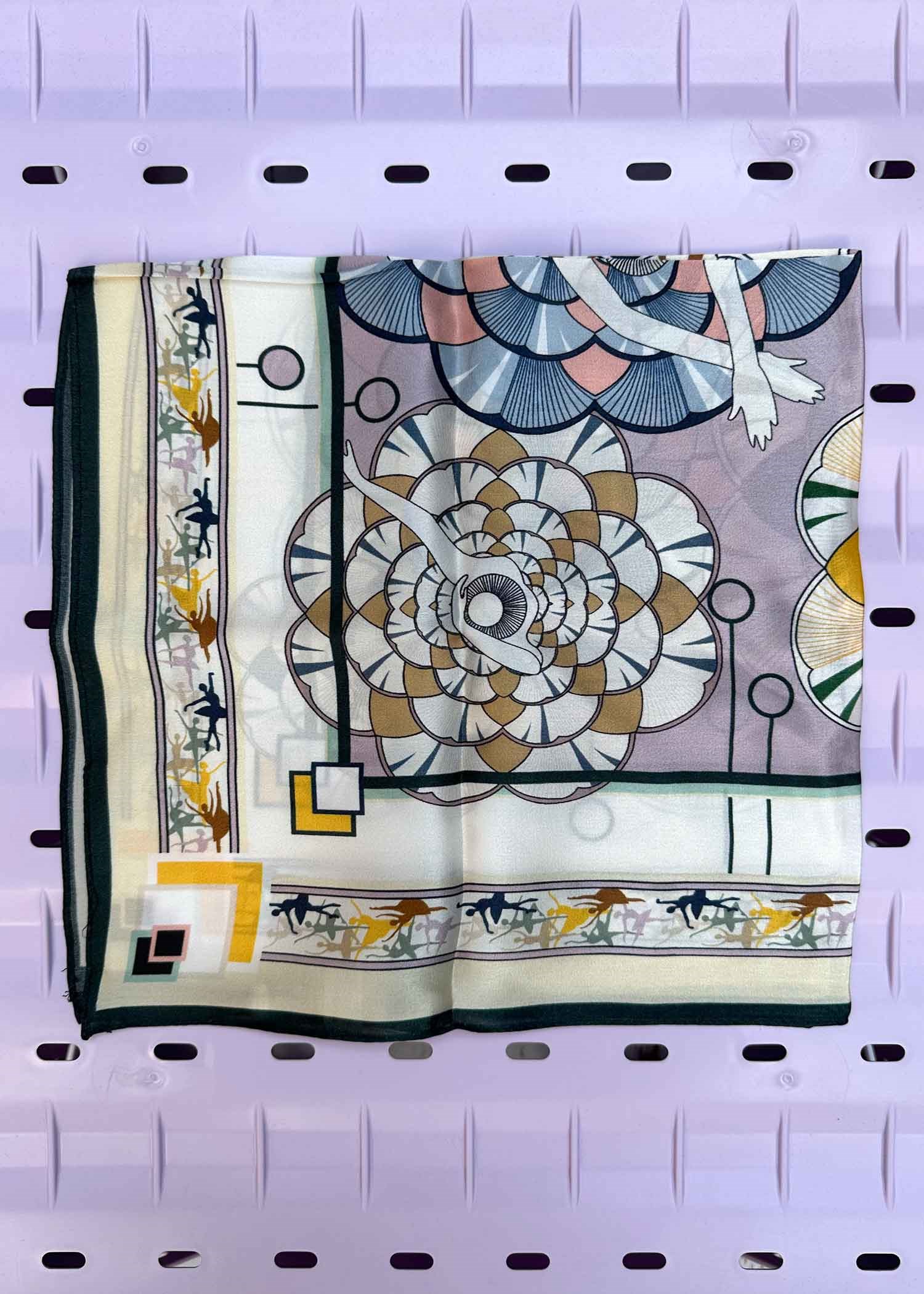 Smukt pastelfarvet silketørklæde fra Plisse Copenhagen med print af ballerinaer.