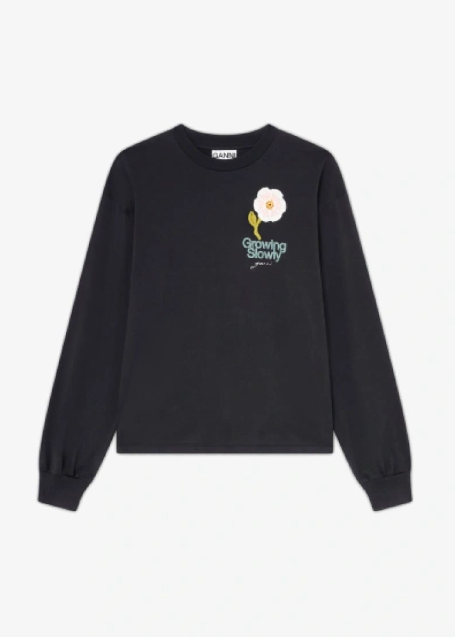 Basic cotton jersey long sleeve crochet patch bluse Phantom A1050176 Ganni Basic cotton jersey long sleeve crochet patch bluse Phantom A1050176 Ganni