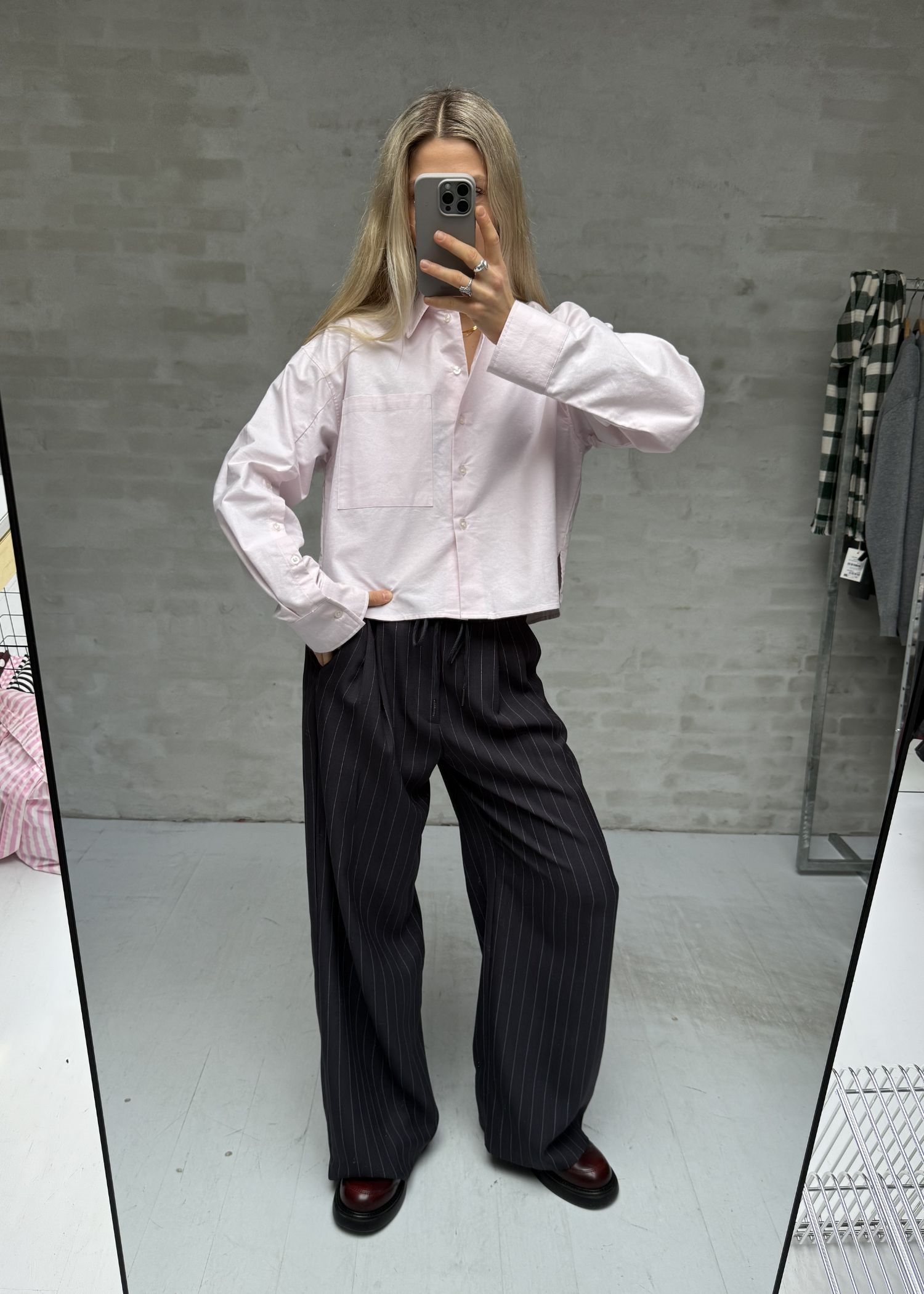 Svag lyserød cropped skjorte fra Second Female i en kraftig bomuldskvalitet, med krave, gennemgående knaplukning foran, 1 påsyet brystlomme, samt lange ærmer med knapdetaljer forneden.