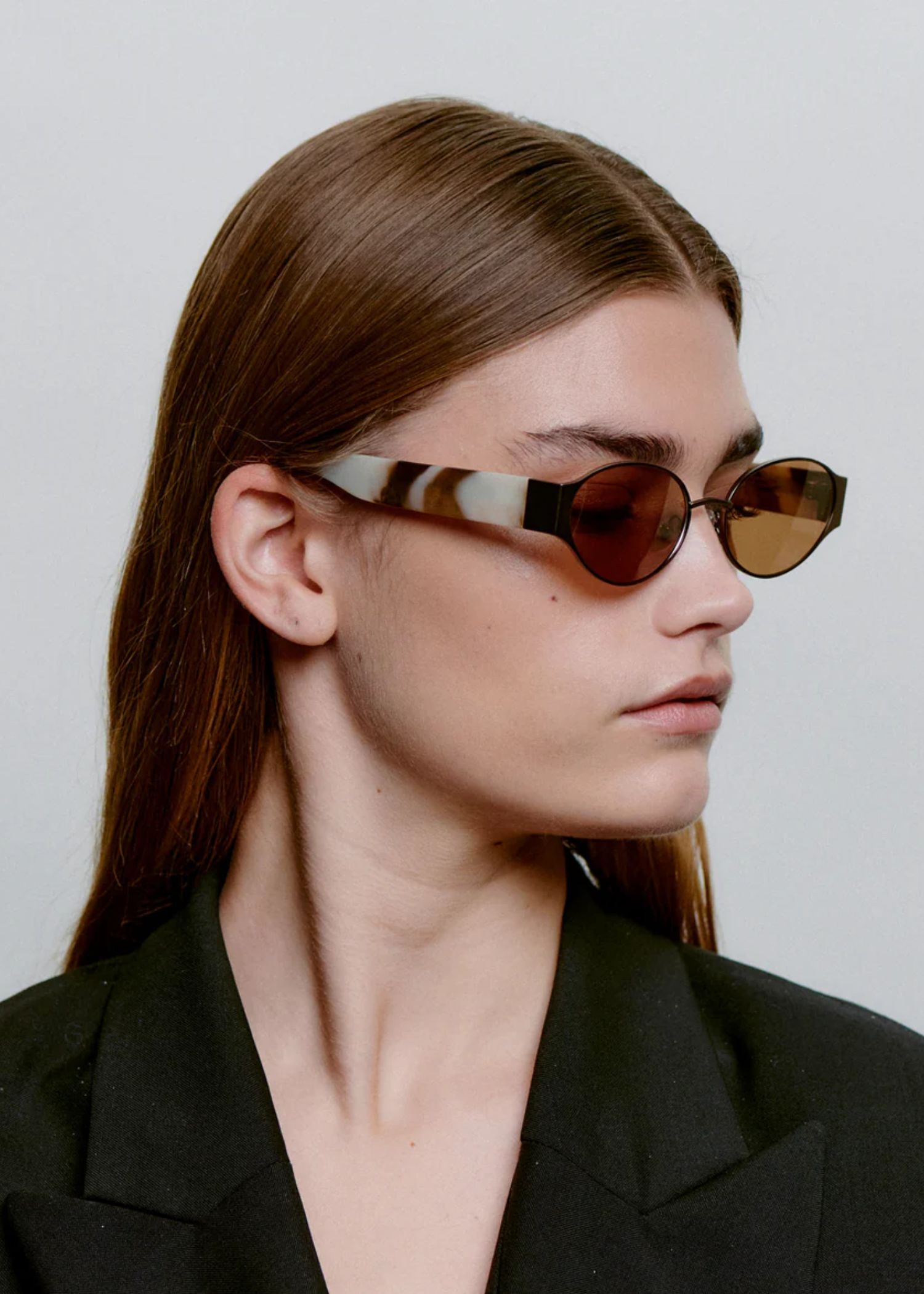 Bella - Matte Brown Cookie Dough - Matte Brown Cookie Dough er en kompakt solbrille med oval 90’er-attitude og en let cat-eye-fortolkning, der giver et feminint, skarpt udtryk i et lille format. Den er perfekt, hvis du vil have en solbrille, der føles fashion, men stadig ren og “easy to wear”. Bella gør meget med få virkemidler - og fungerer både som hverdagsdetalje og som statement.