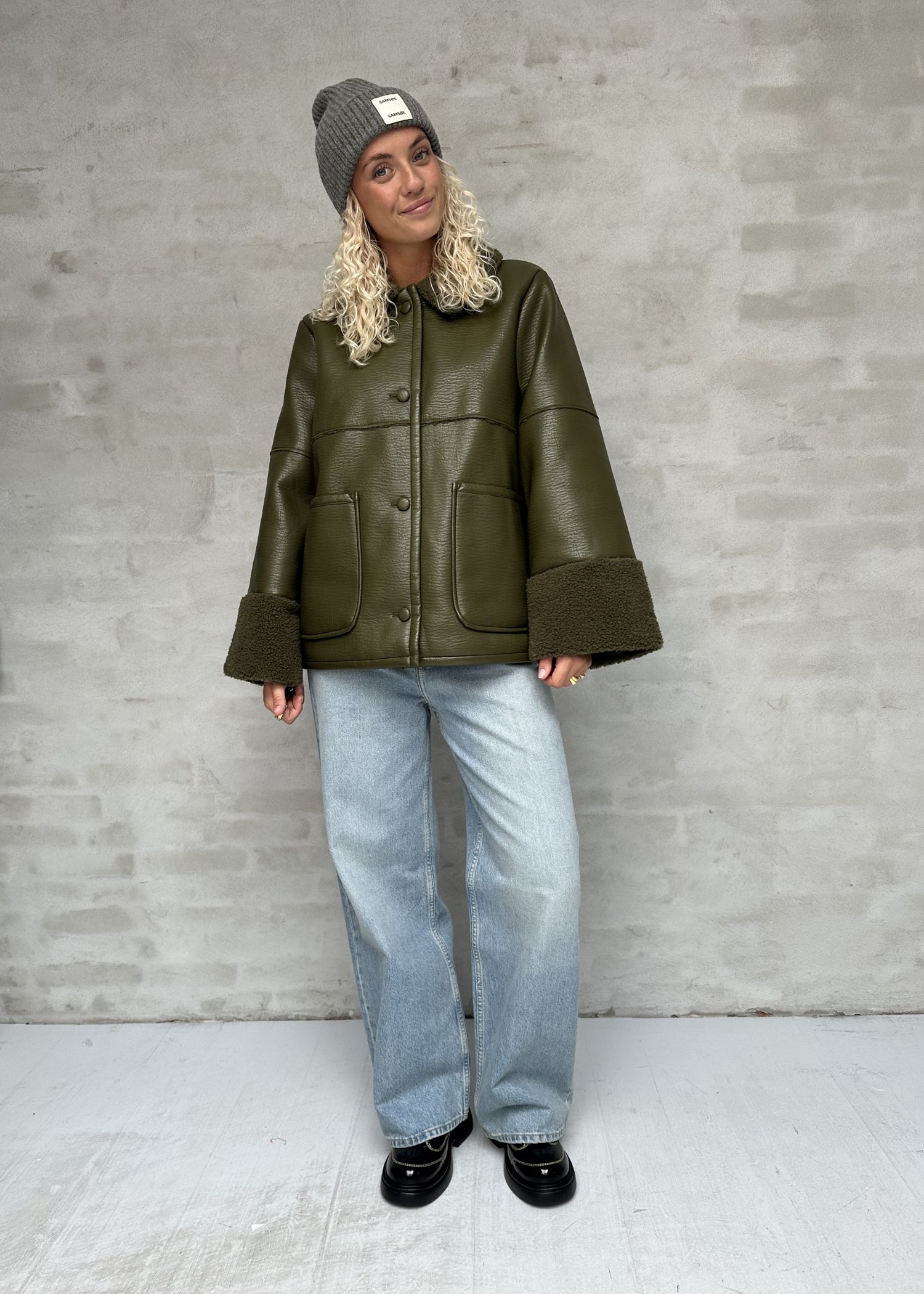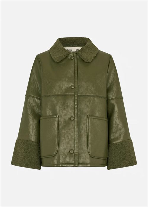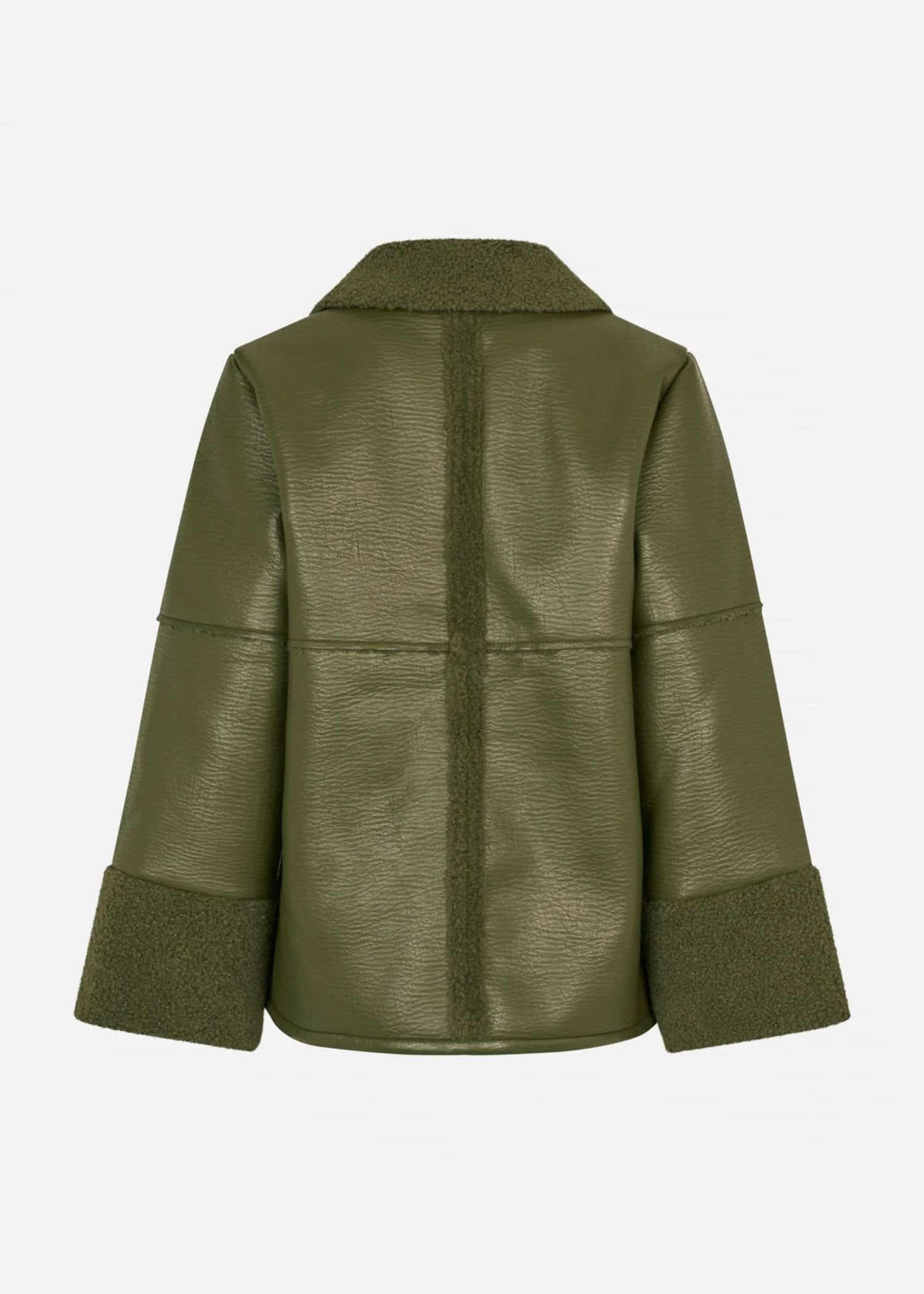 Birdie-jakken fra Baum er et populært og iøjnefaldende stykke overtøj i tekstureret kunstlæder. Som en cool kontrast til det kunstige læder har vi tilføjet blød krave og manchetter i kunstigt lammeskind samt detaljer ned langs bagsiden af jakken. Læderjakken har en behagelig løs pasform med ekstra lange ærmer og påsyede lommer i siderne samt en praktisk halslukning, så du kan justere kraven. En sand favorit i overtøjet, som du kan tage med dig gennem de koldere årstider.