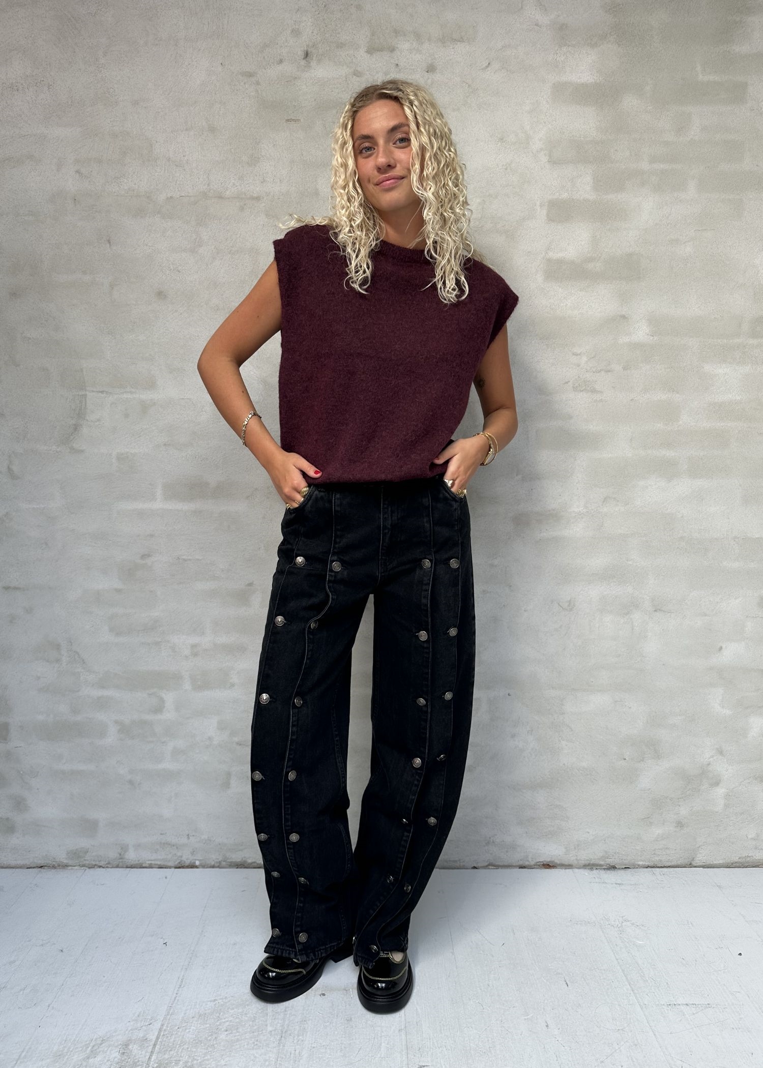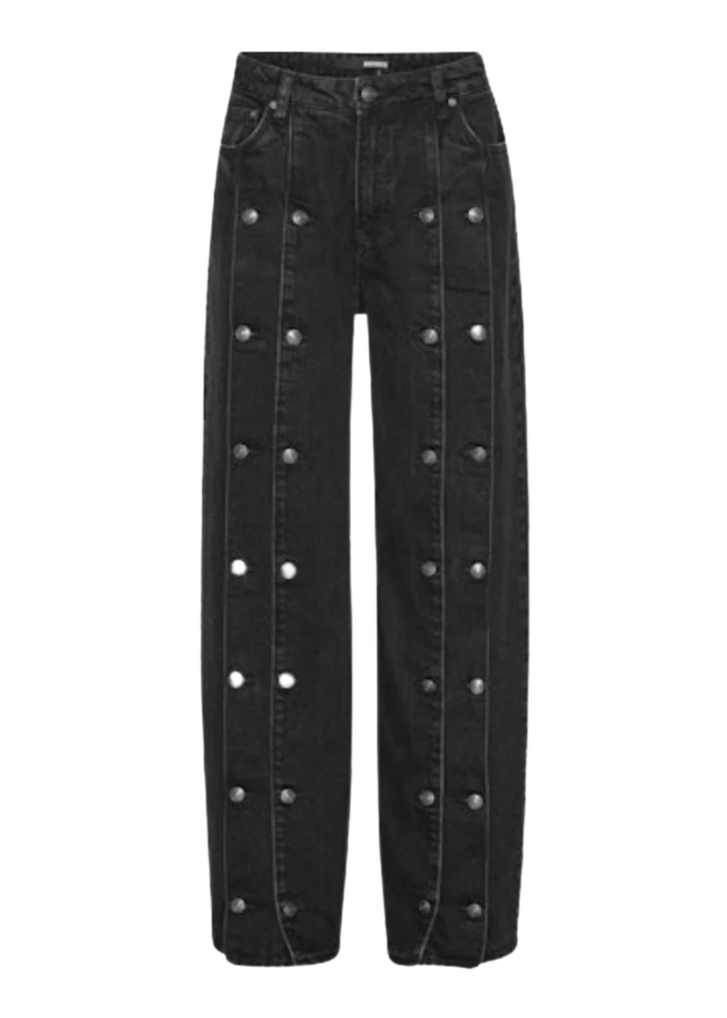 Sorte Button Detail Wide Jeans fra Rotate giver et råt og moderne udtryk med deres unikke knapdetaljer ned langs benene.