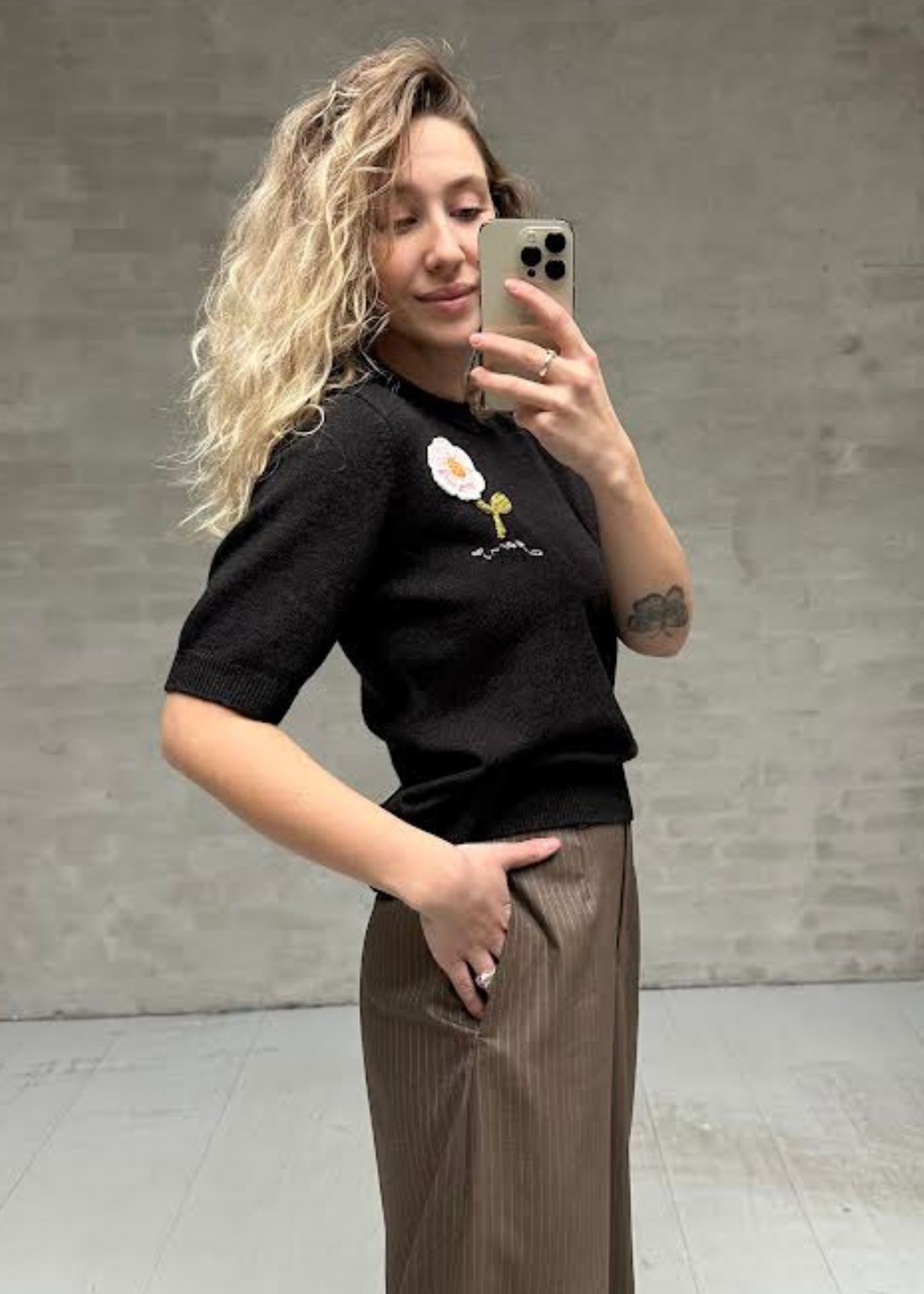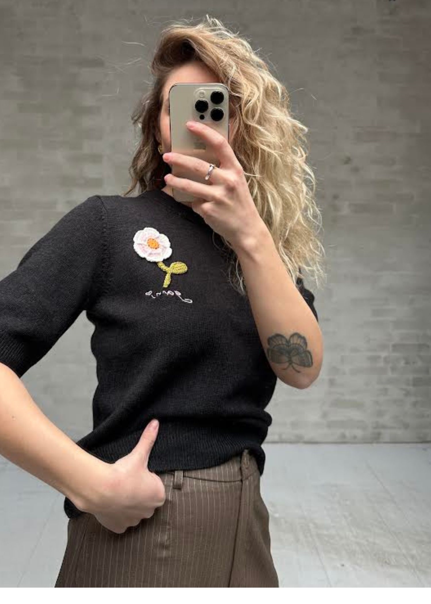 Crochet Applique merino tee Phantom A1070268 Ganni