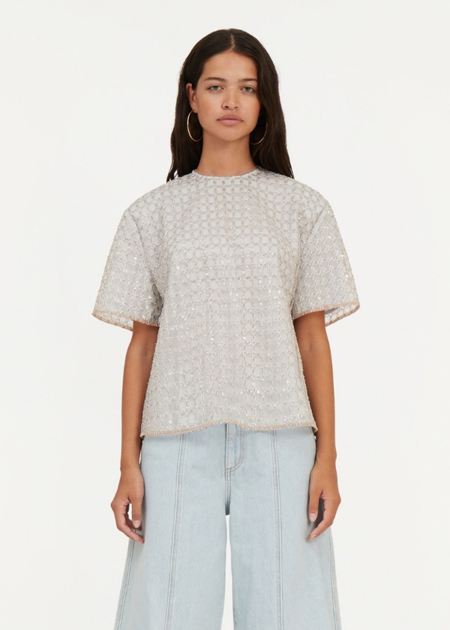 Daline beaded oversized tee Doeskin Beige ROTATE By Birger Christensen