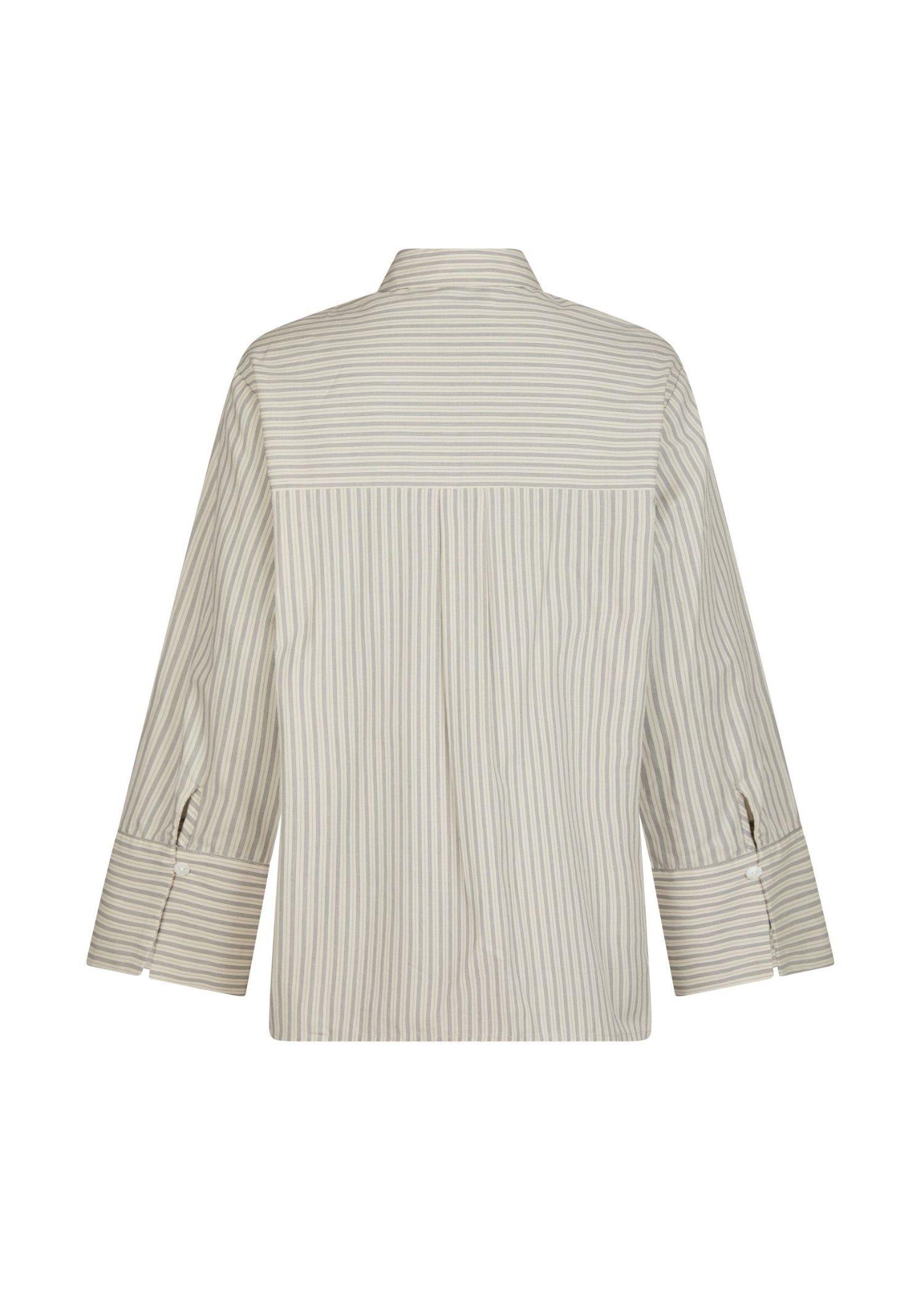 Creme stribet skjorte fra Neo Noir med krave, knaplukning ned foran, lange brede ærmer med 2 knapslukning, så ærmet også kan gøres smalt.