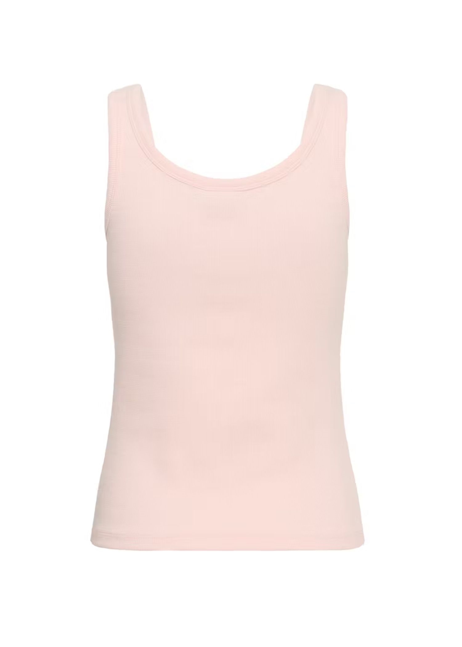 Rosa ribstrikket tanktop fra Gestuz med broderet tone i tone logo på brystet. Toppen har dyb rund halsudskæring og tætsiddende pasform.