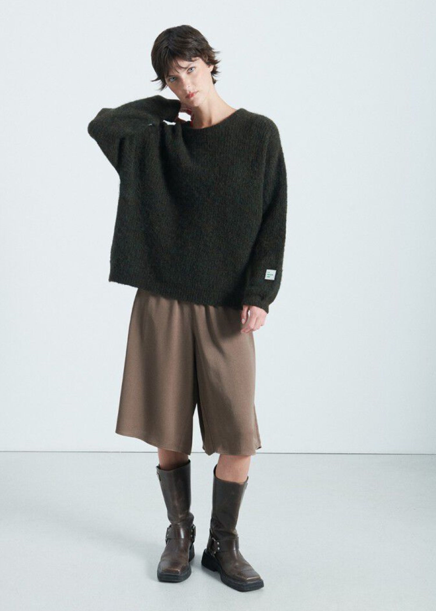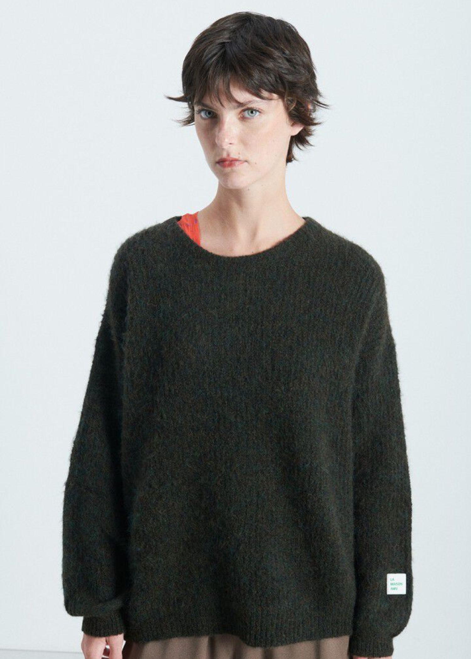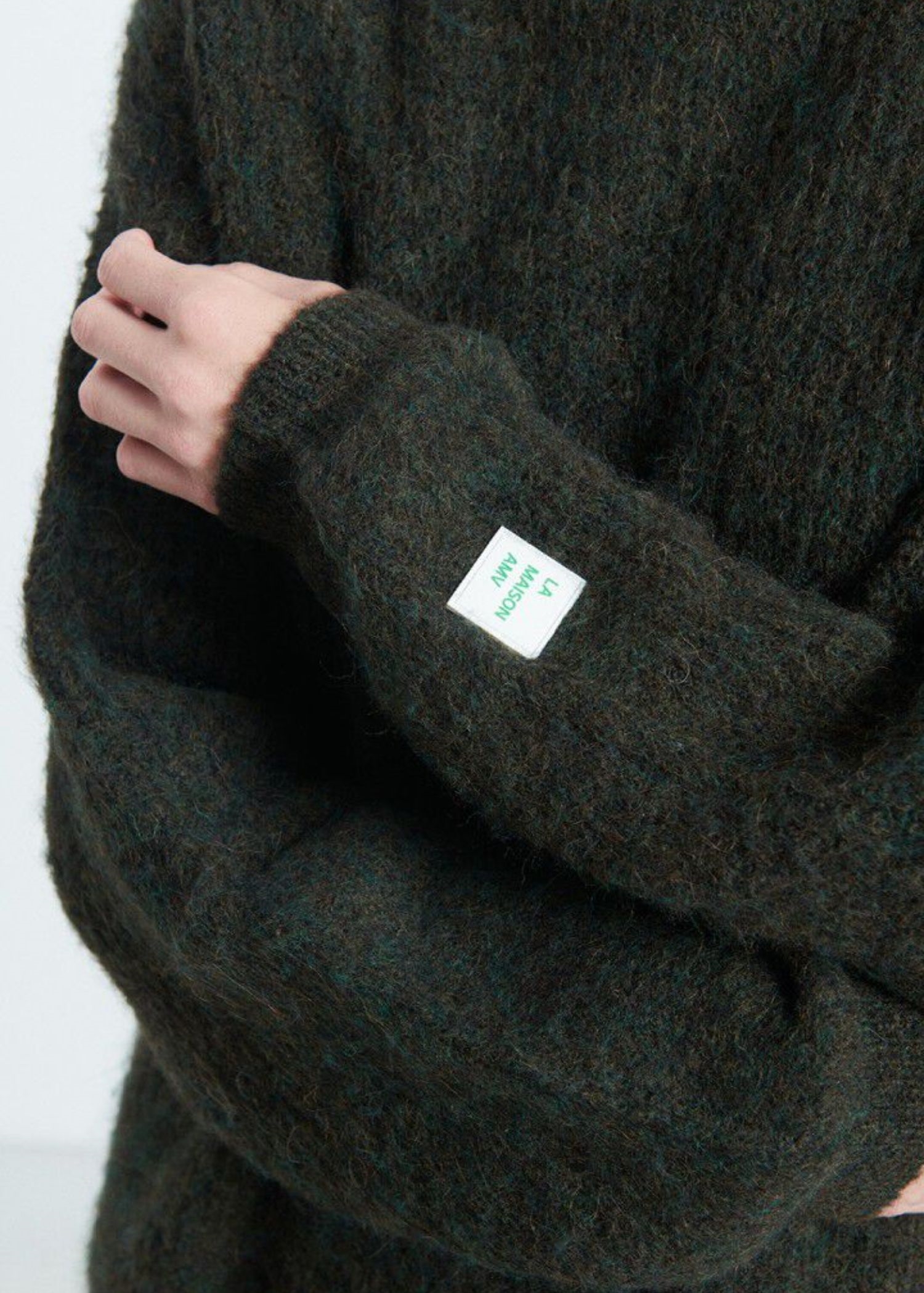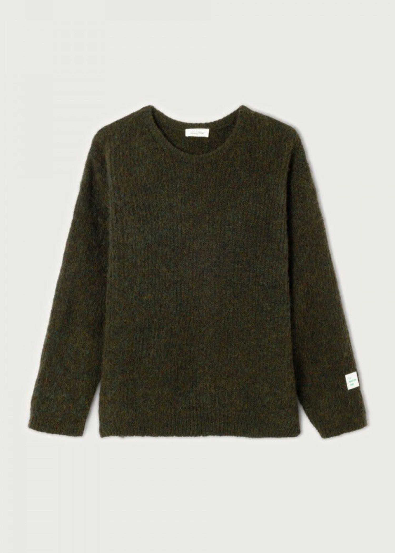 Army meleret strik fra American VIntage i en lækker blød strikkvalitet med hvidt gummilogo på venstre ærme forneden.