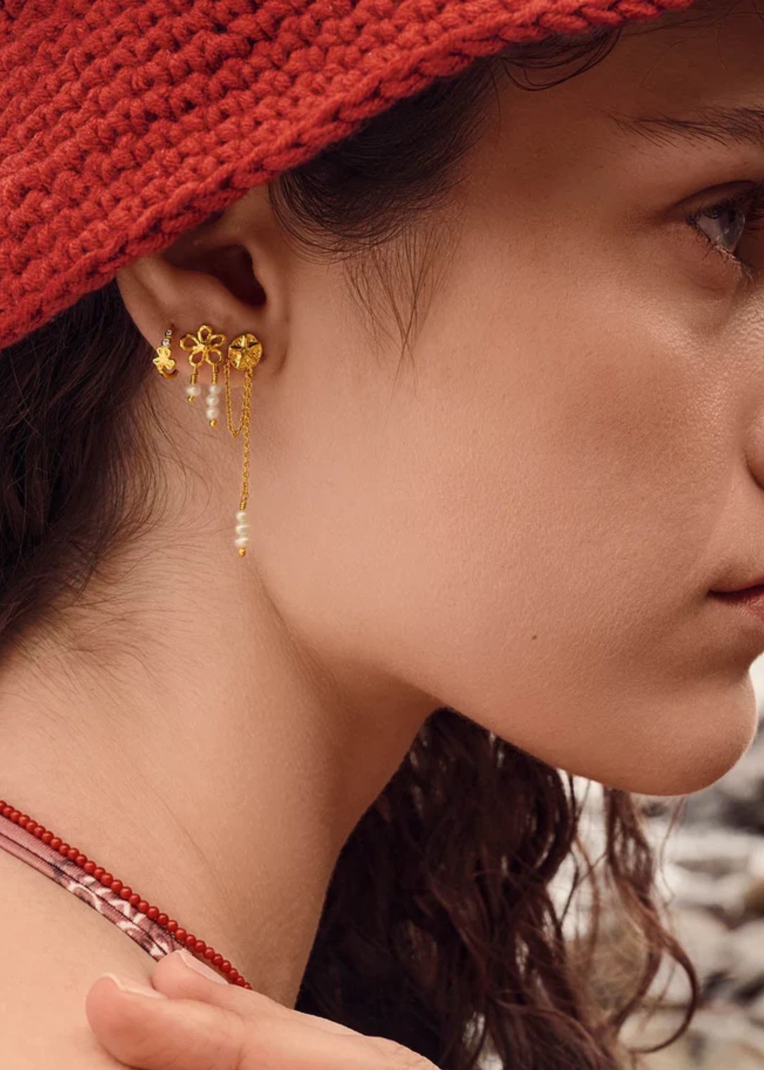 Vores Elo Øreringe fra Maanesten hænger fra øret som en lille strandskat, der minder en om solrige dage ved havet og skaller fundet i vandkanten.