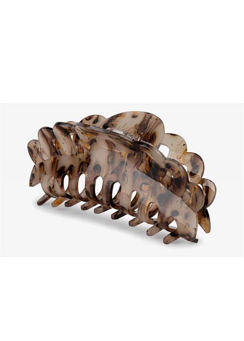 Stor beige hårklemme med guld detaljer fra Sui Ava, med et design der gør det muligt at holde på ekstra stort hår.