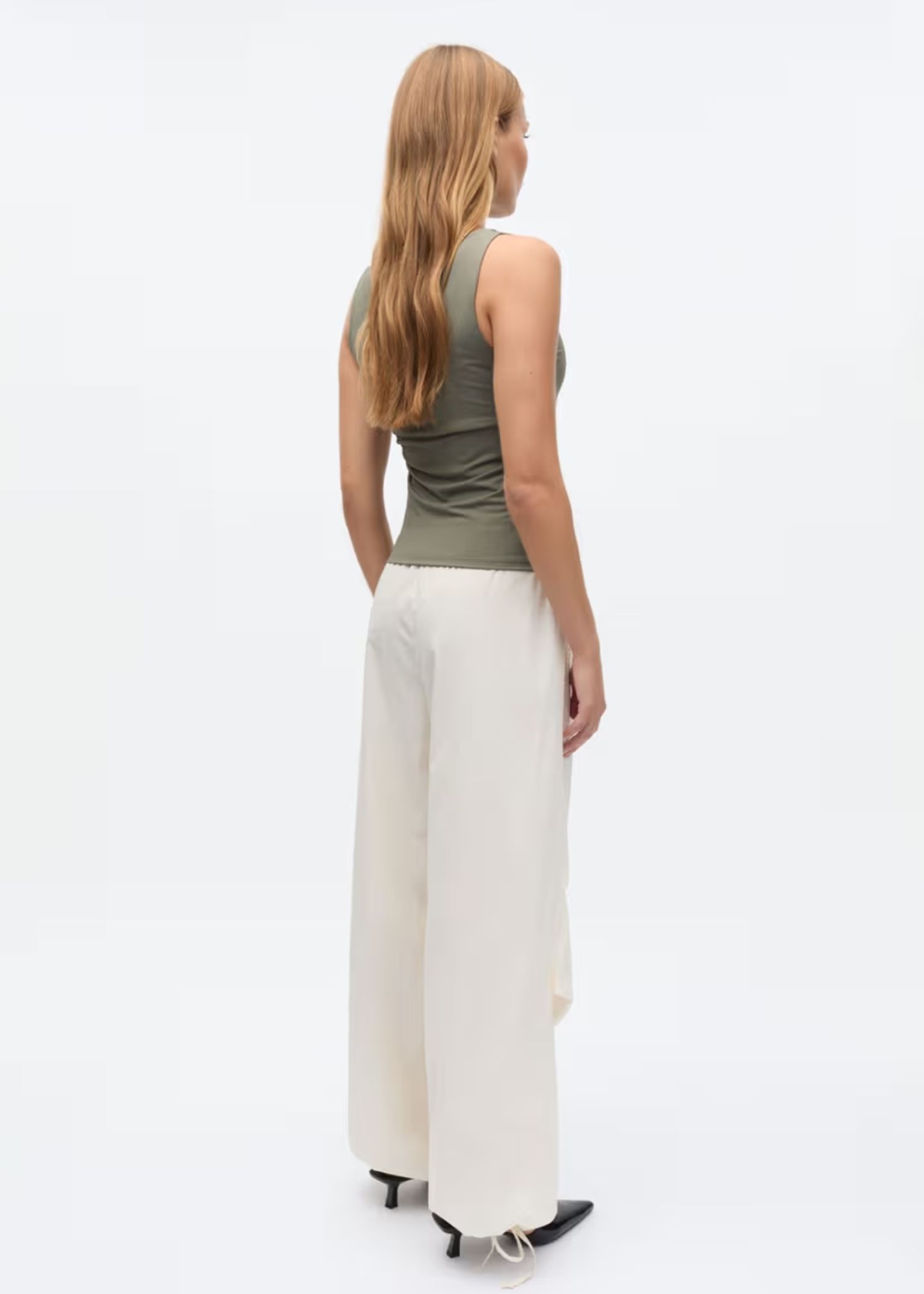 Oliven farvet top fra Envii med bådhals i en glat kvalitet.