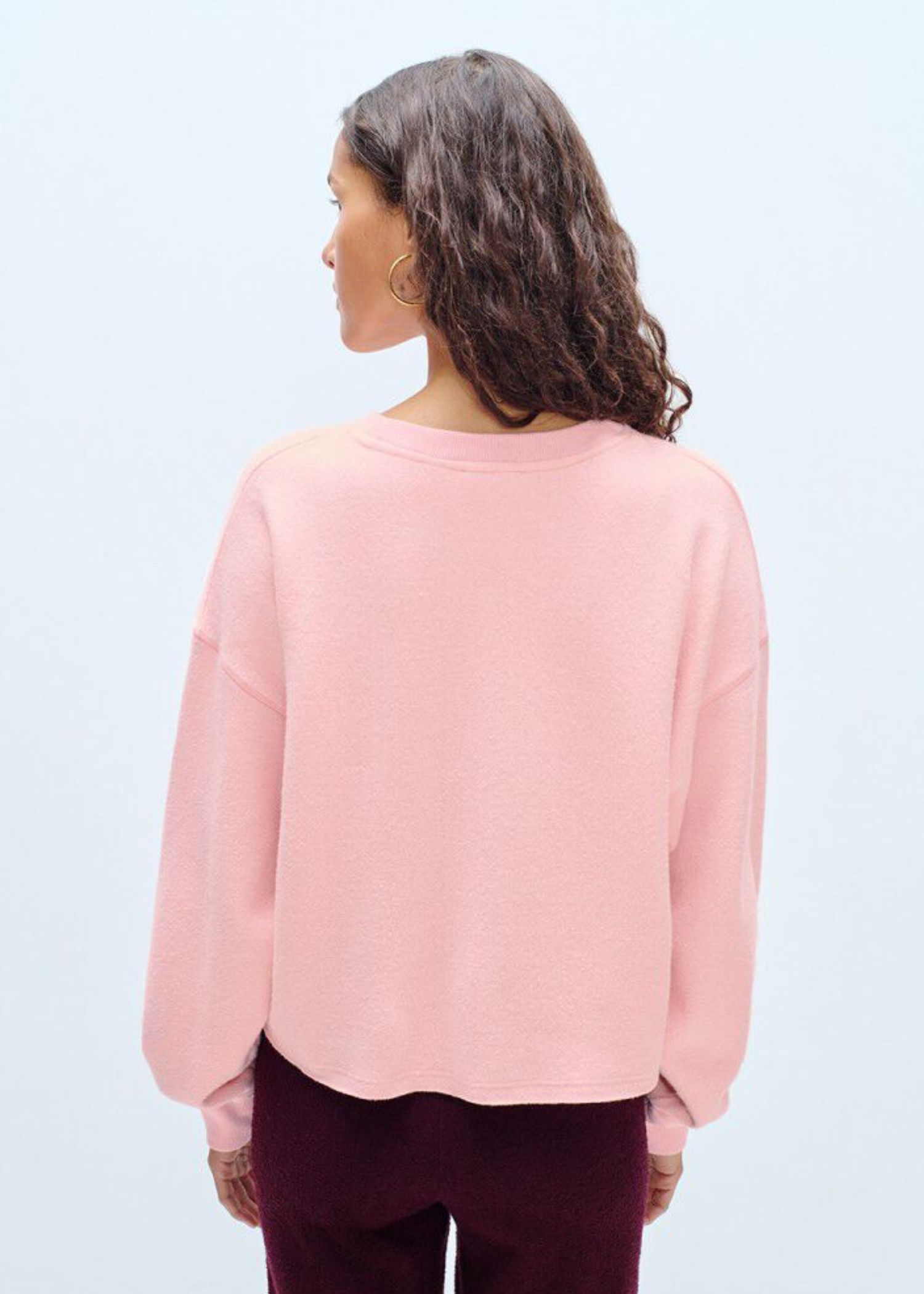 Kort lyserød sweat fra American Vintage med sandfarvet broderet logo på brystet. Sweatshirten bred pasform i en blød bomuldskvalitet med stretch.