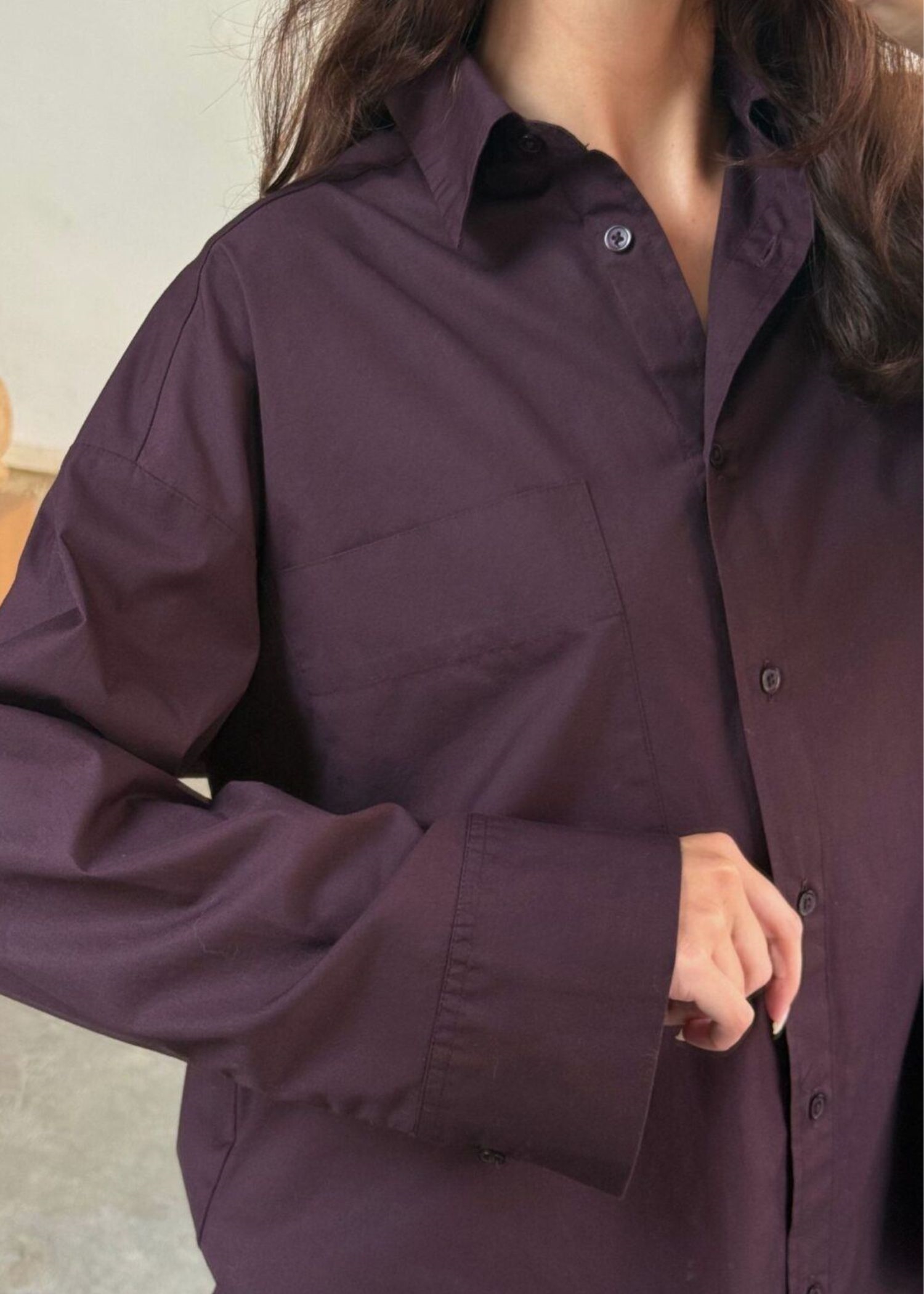 Bordeaux oversize skjorte fra Boii Studios i 100% bomuld. Skjorten har knapper ned foran, ekstra længde bagpå og brede ærmer med 2knapslukning der kan justeres, så man selv kan vælge om man ønsker et smalt eller et bredt ærme.