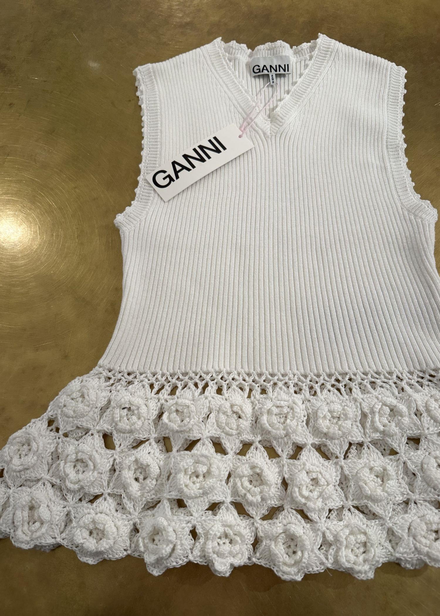 Fine cotton rib crochet vest Egret A1070251 Ganni Fine cotton rib crochet vest Egret A1070251 Ganni