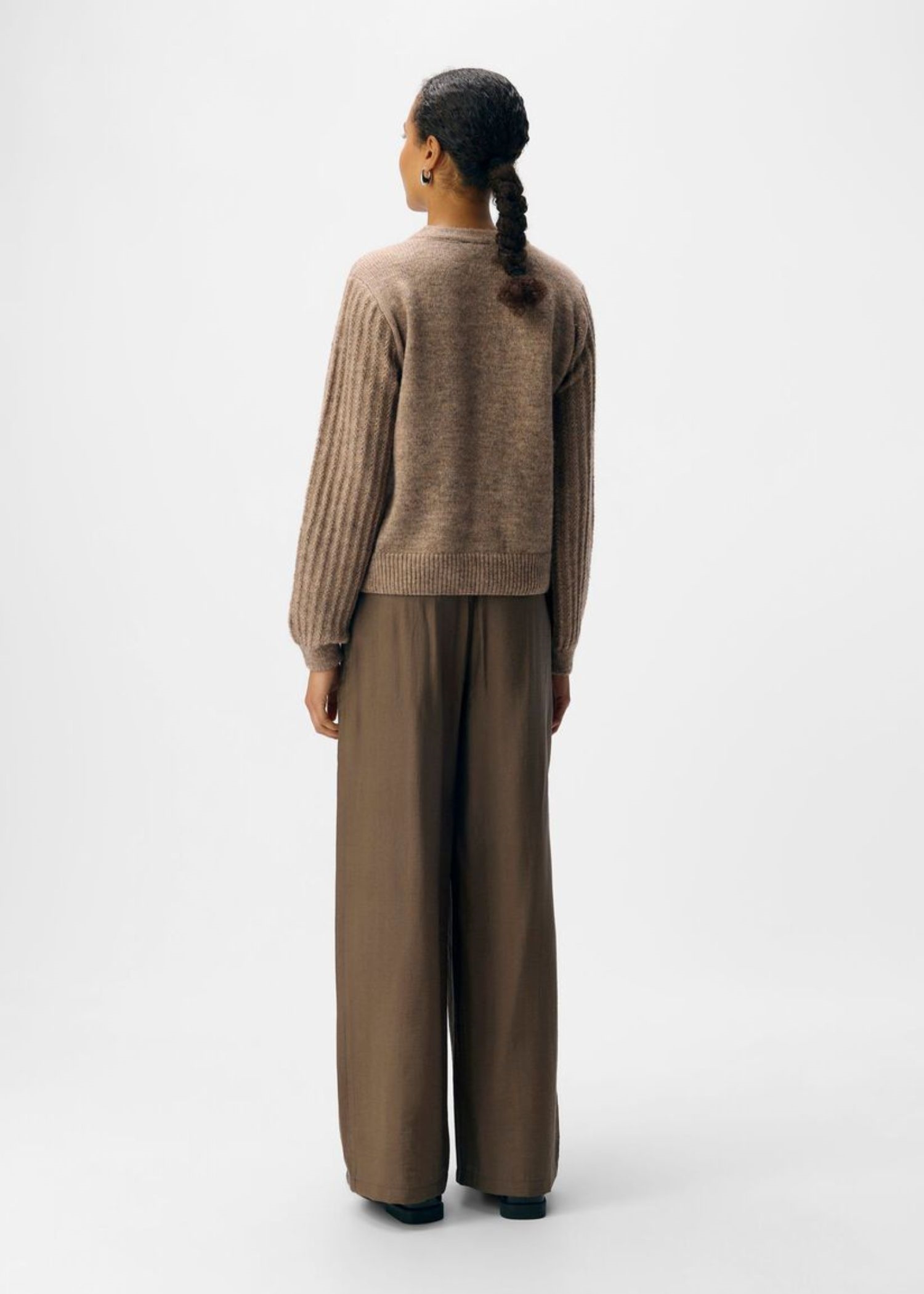 Flora ls knit button cardigan Desert Taupe Melange Object