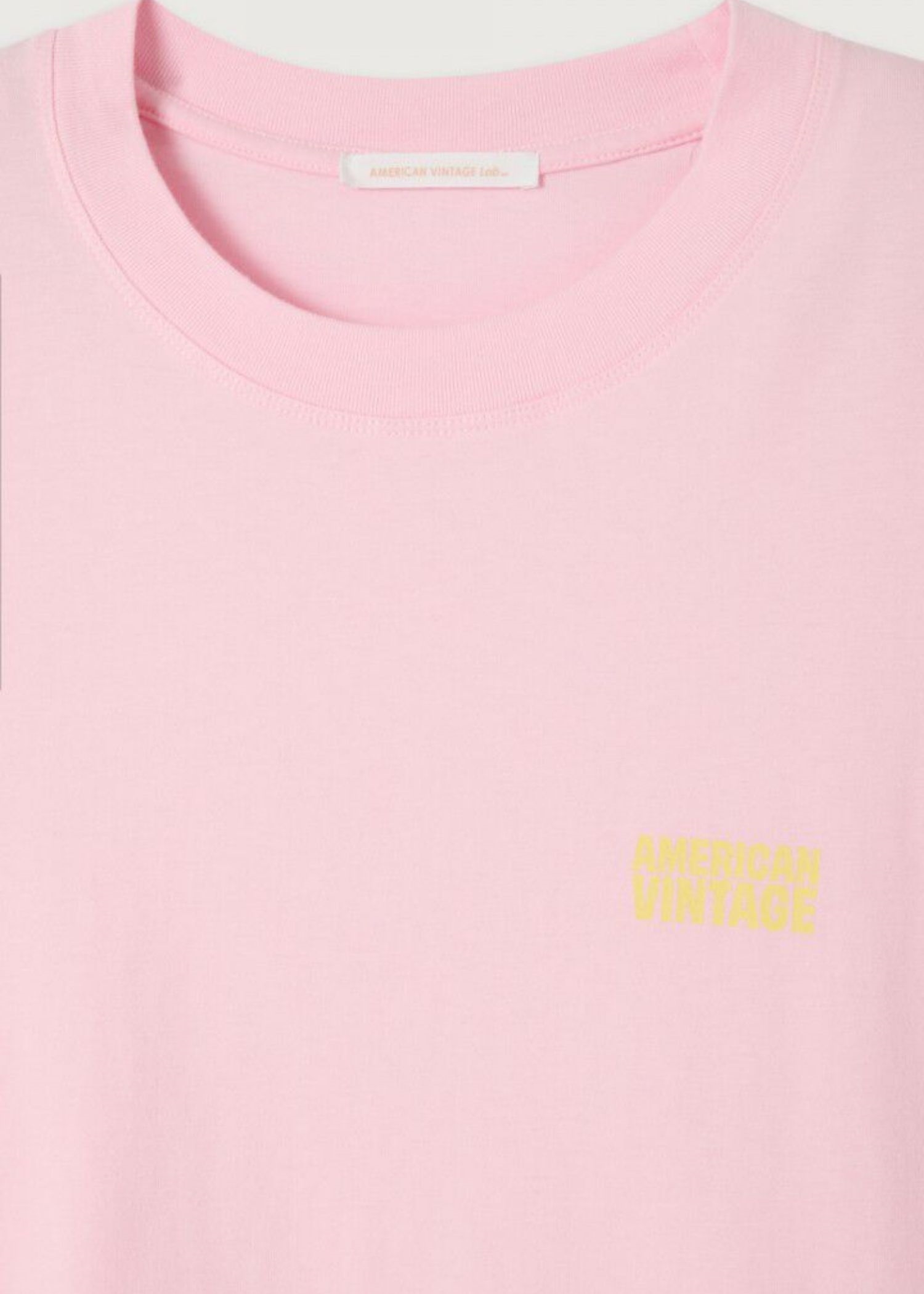 Candy lyserød bluse fra American Vintage med gult logo på brystet. Blusen i en løs pasform  er lavet i en lækker blød bomuldskvalitet.