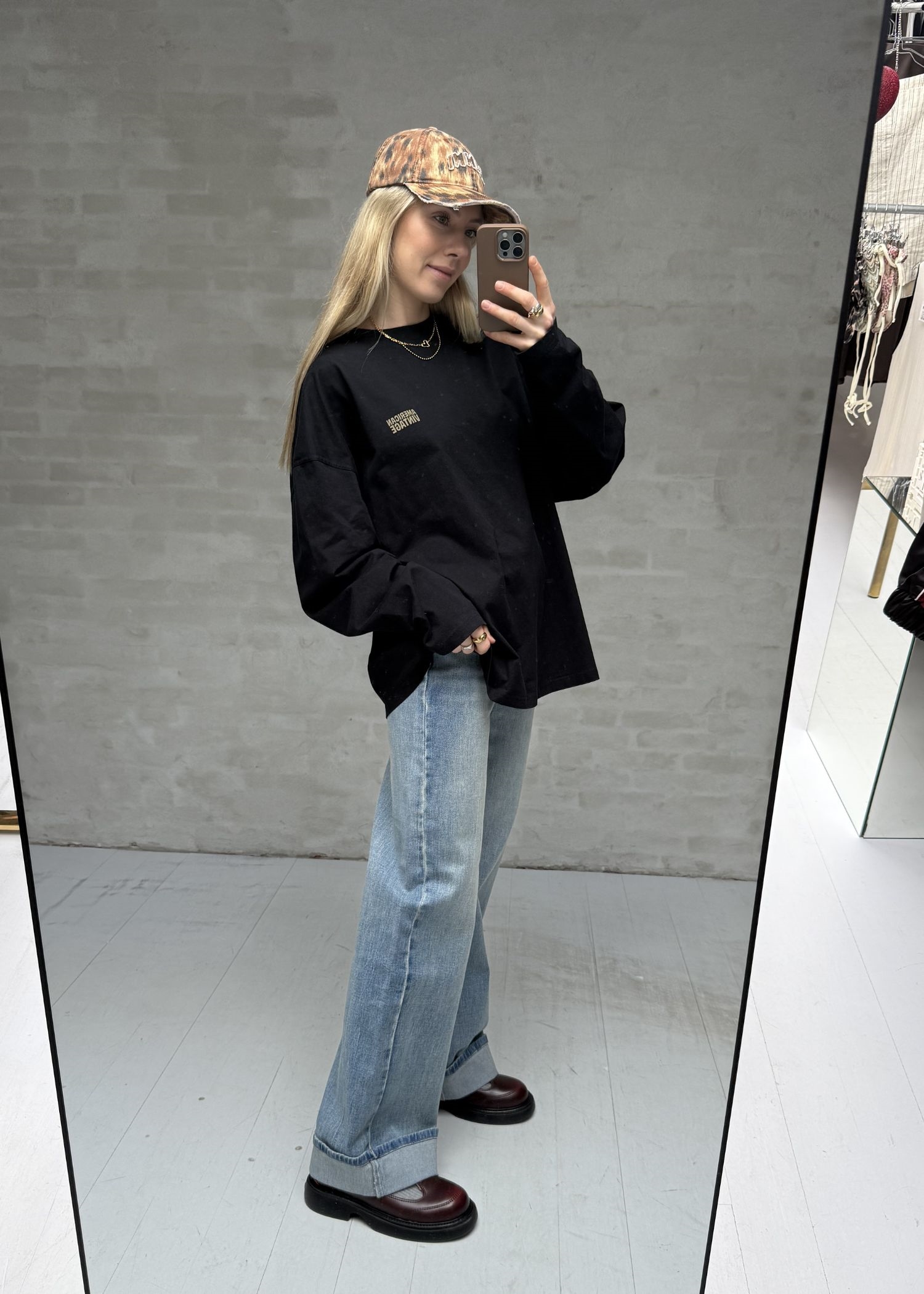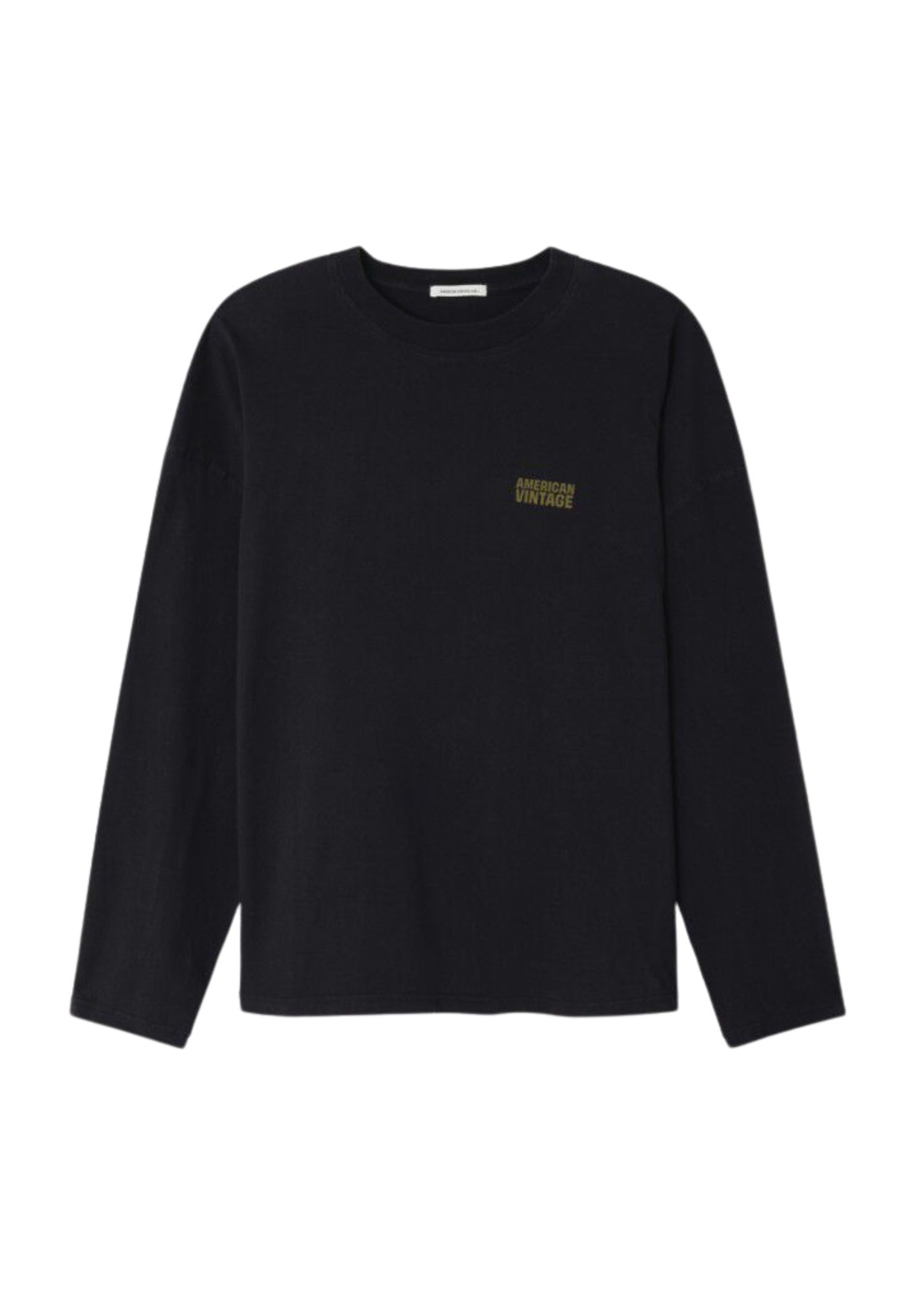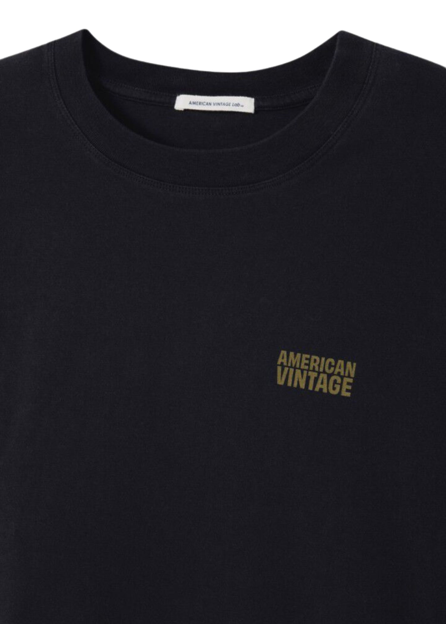Sort oversize bluse fra American Vintage med sandfarvet logo på brystet i en lækker blød bomuldskvalitet.