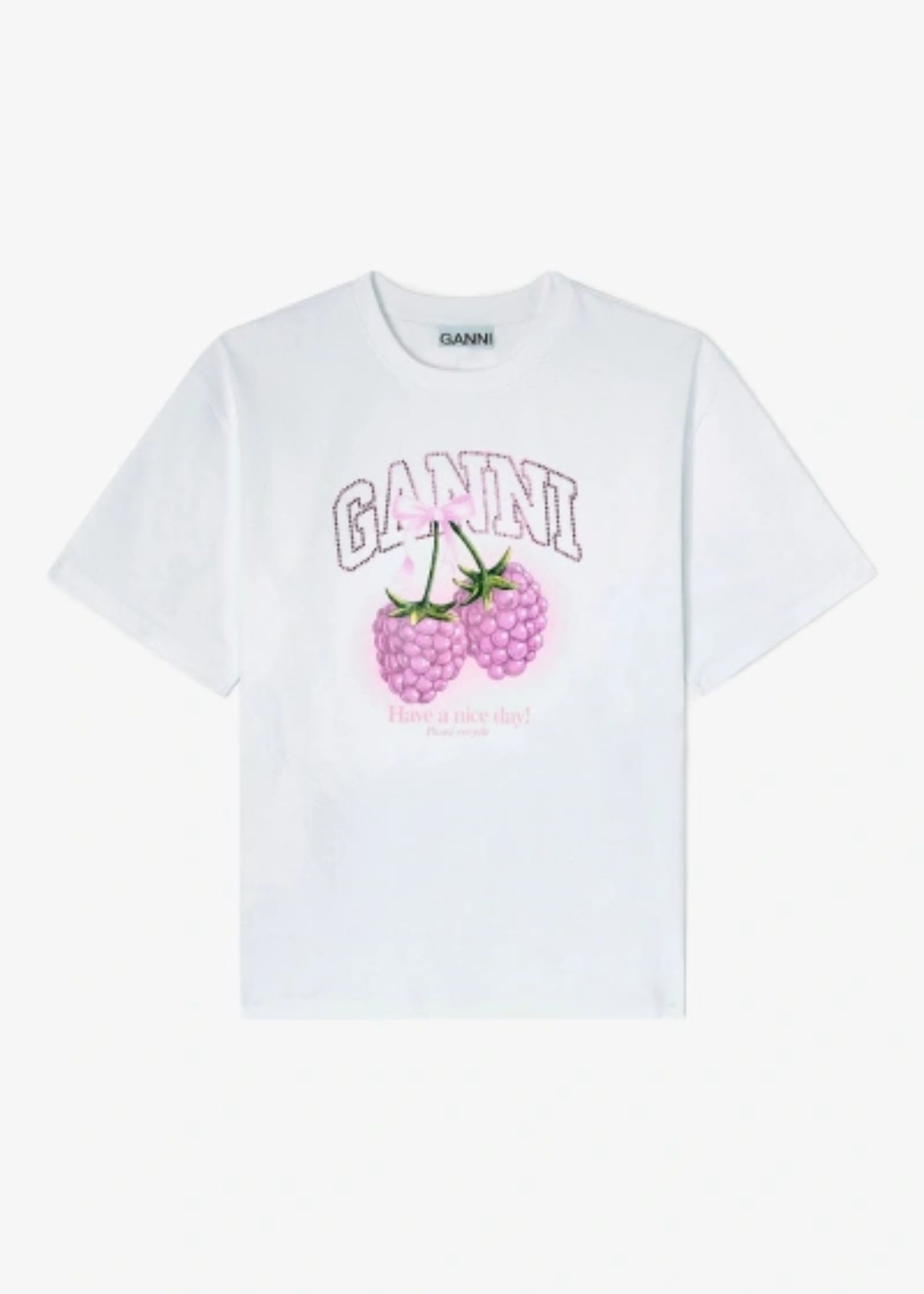 Heavy cotton jersey raspberry tee Bright White A1050140 Ganni