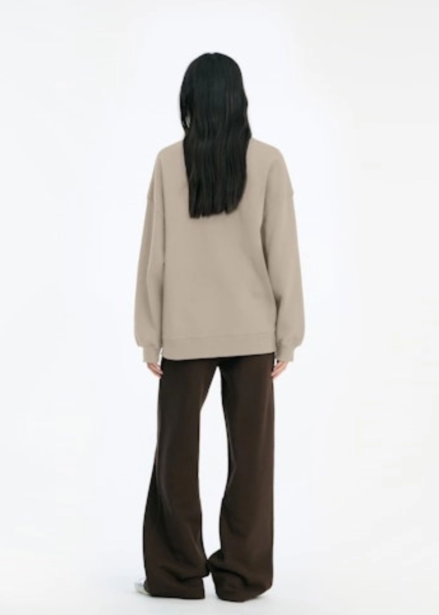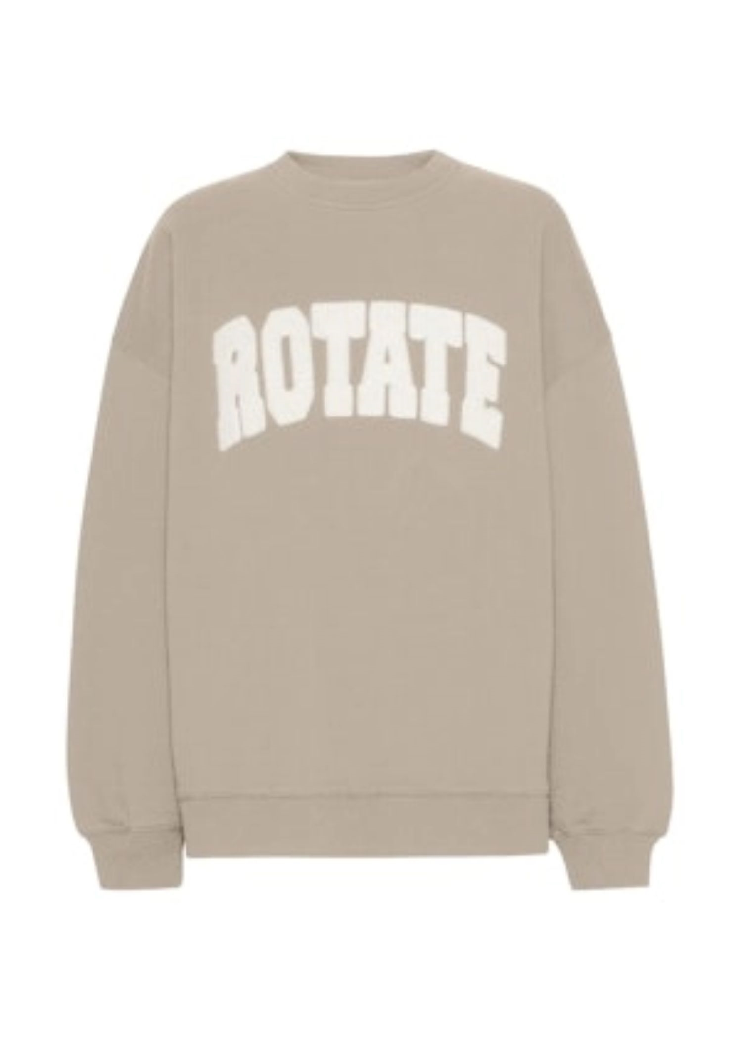 Sandfarvet oversize sweat fra Rotate Sunday med off white frotte logo på brystet.