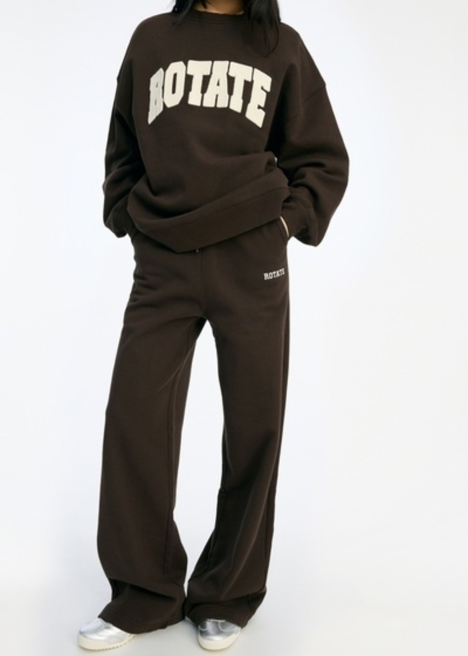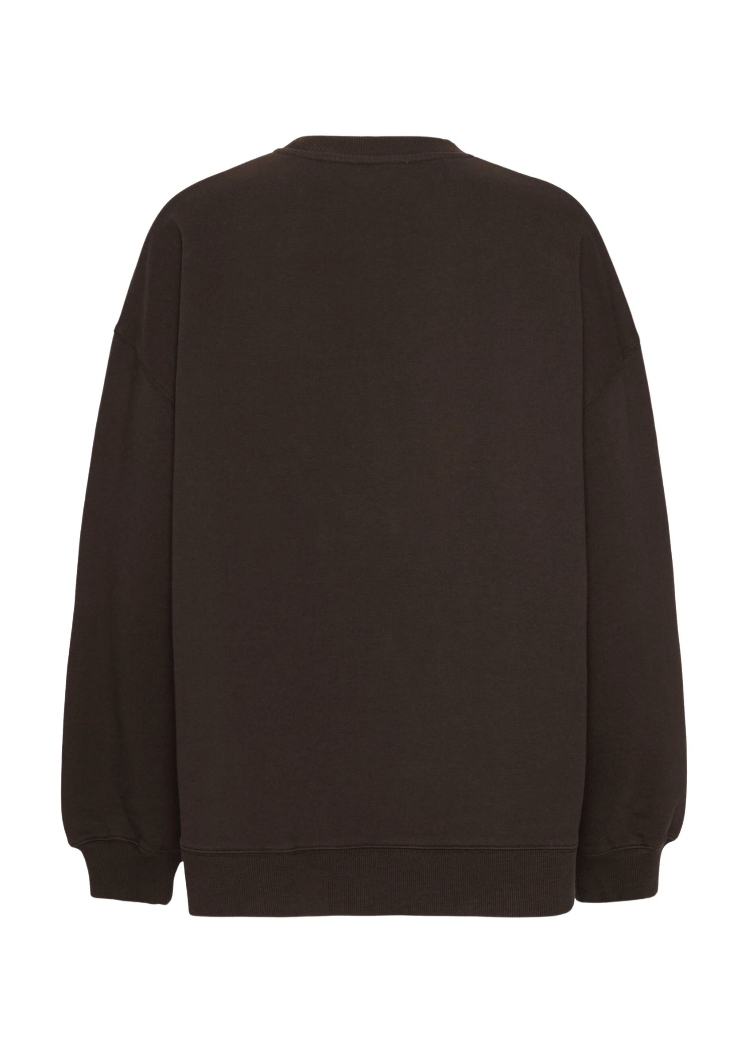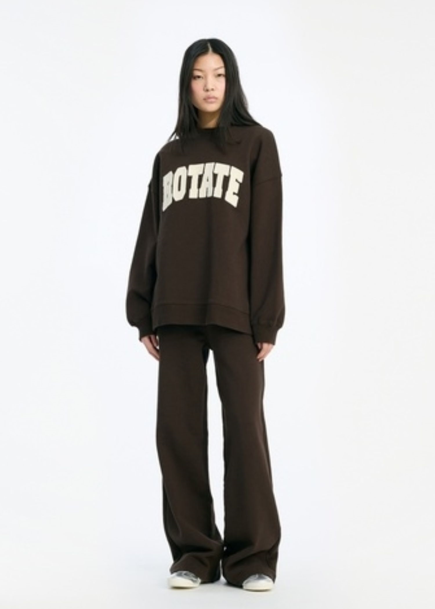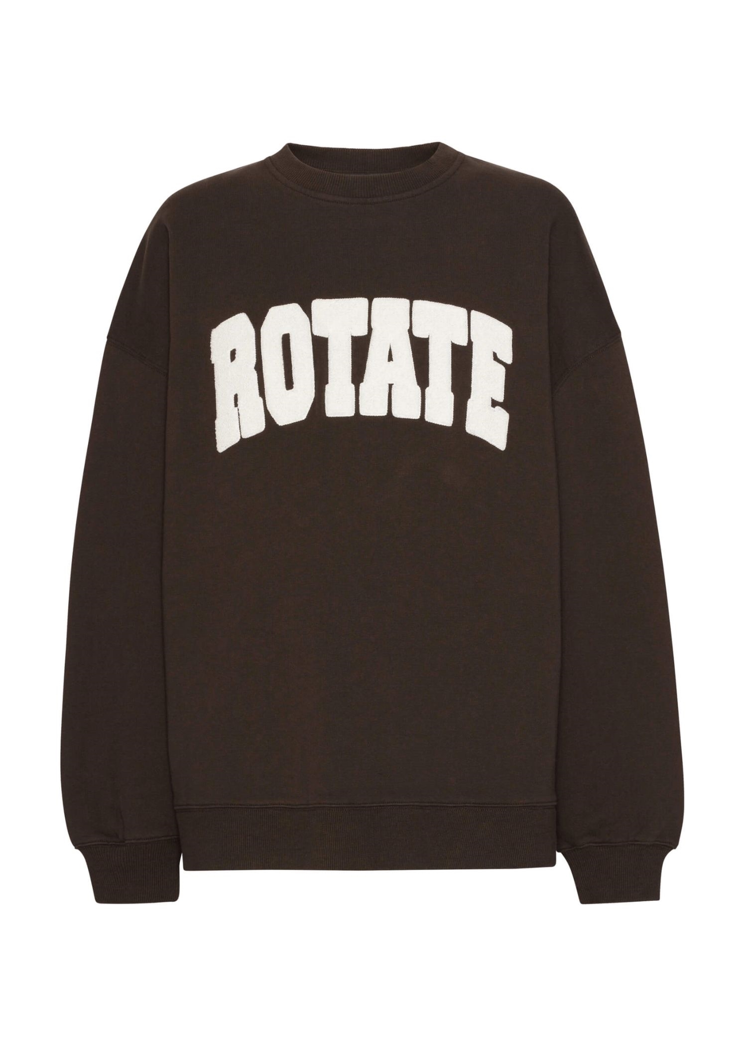Mørkebrun oversize sweat fra Rotate Sunday med off white frotte logo på brystet.