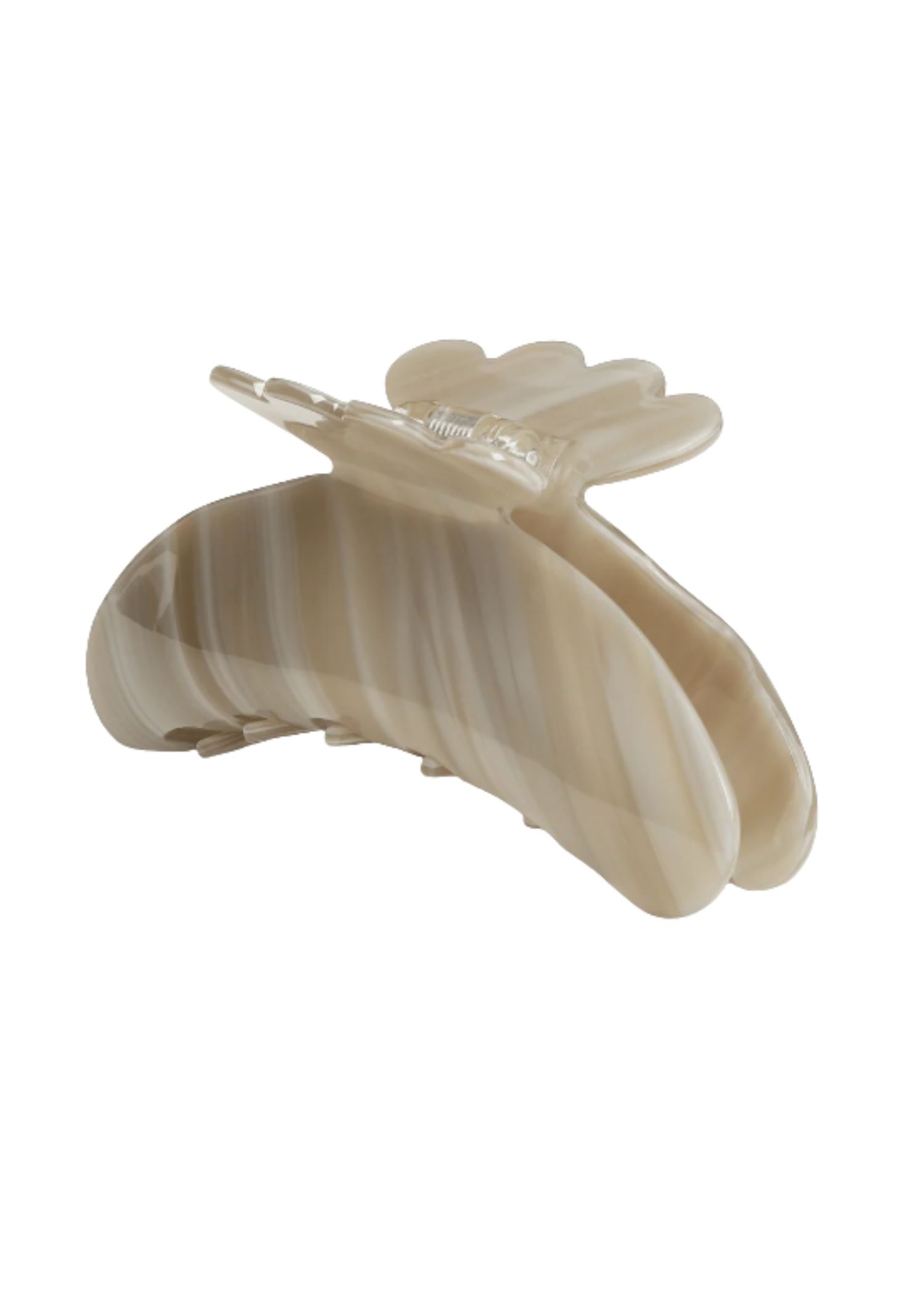 Helle Icy Pine Big fra Sui Ava er en stor hårklemme med et marmoreret beige look og blød glans. Det elegante design kombinerer funktion og æstetik - perfekt til når du vil have håret væk fra ansigtet med stil. En smuk og praktisk detalje til både hverdag og særlige øjeblikke