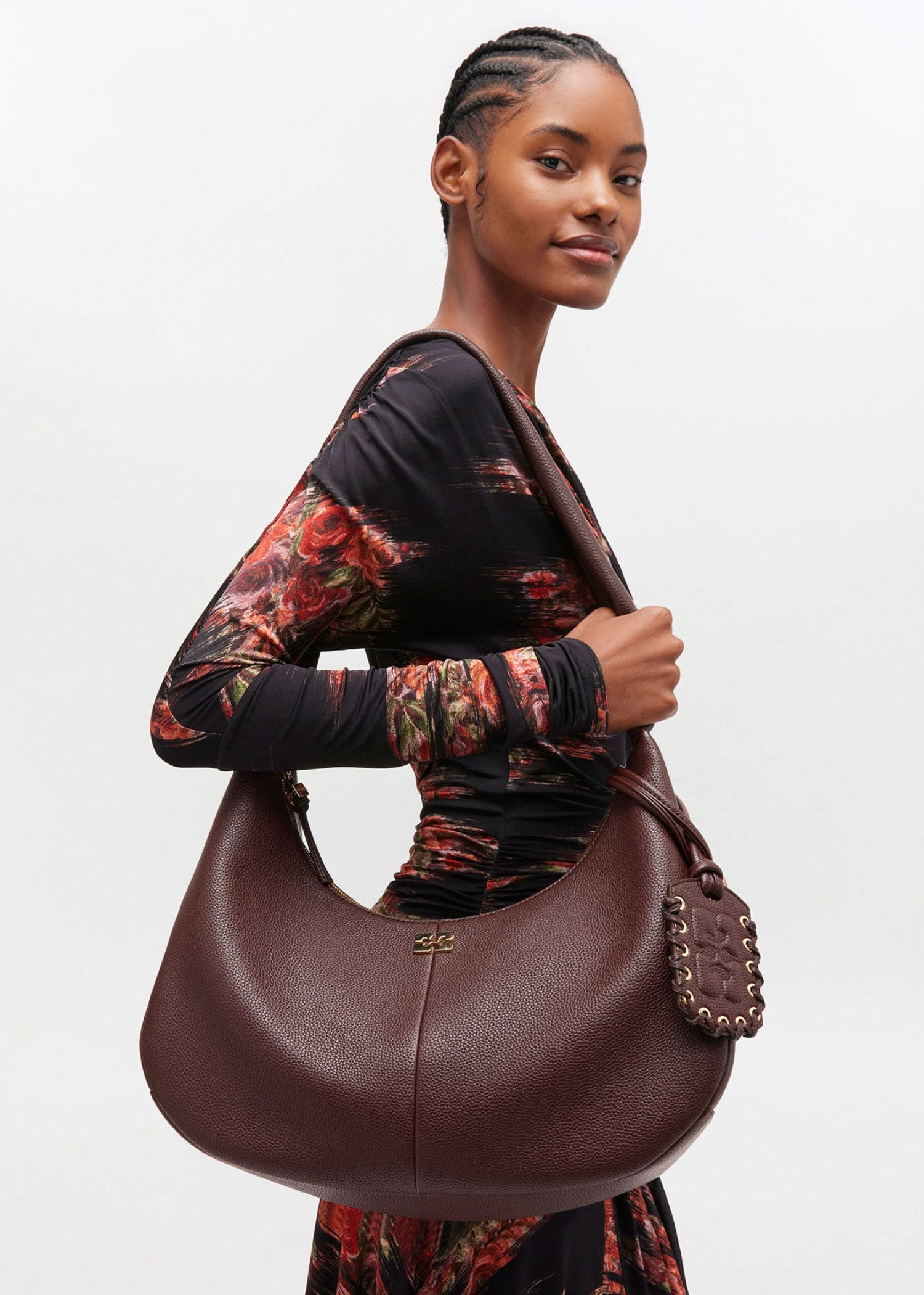 Hobo medium Grained bag Chicory Coffee A7298 Ganni