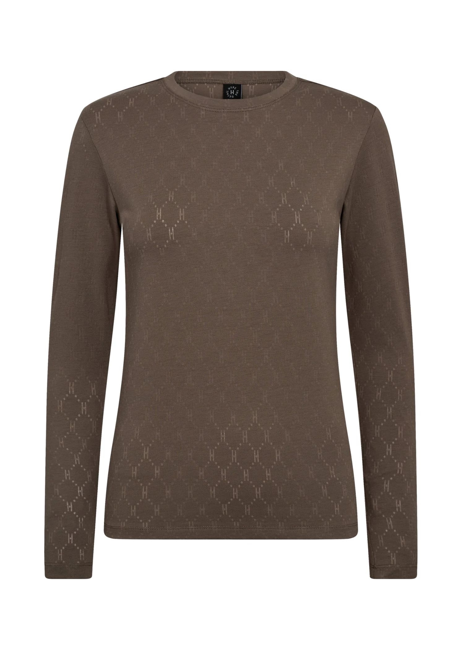 Taupe farvet bluse fra Hype the Detail med transparent logo mønster i en blød kvalitet med stretch.
