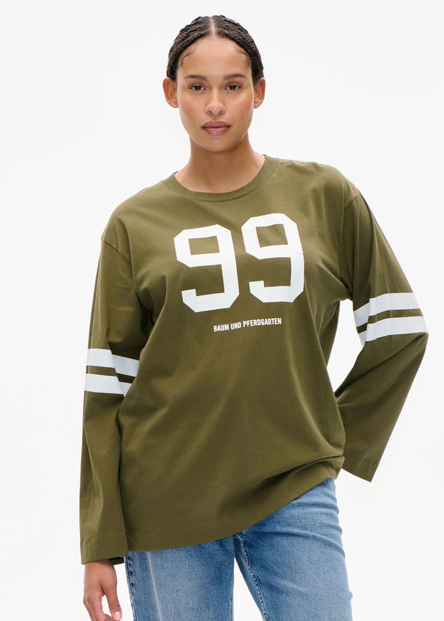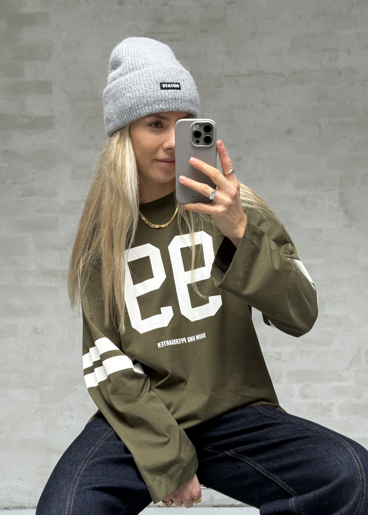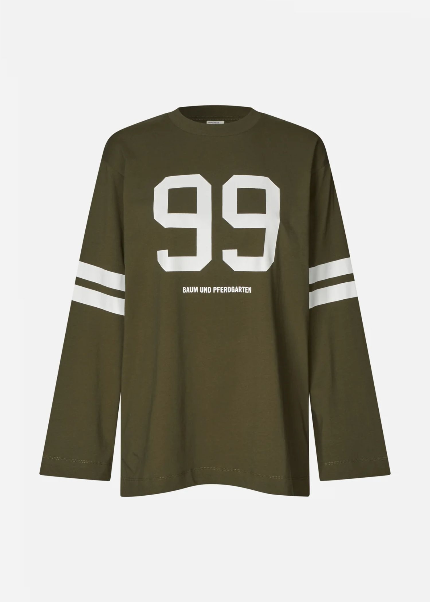 Jeevana-blusen fra Baum Und Pferdagrten i army er en afslappet must-have sweat/bluse med sporty print foran og på ærmerne. Blusen er lavet i blød økologisk bomuld og har en behagelig løs pasform med en klassisk rund hals. Kombiner den med dine yndlingsjeans for et cool og behageligt outfit.