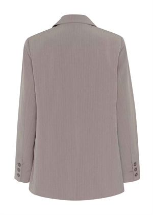 Elegant lys beige dobbelttrådet blazer fra Gestuz i en let polyester/viskose kvalitet med stretch. Blazeren har v-udskæring, hakrevers, 2 paspolerede forlommer,slids bagpå, samt lange ærmer med knapper ved håndleddet.