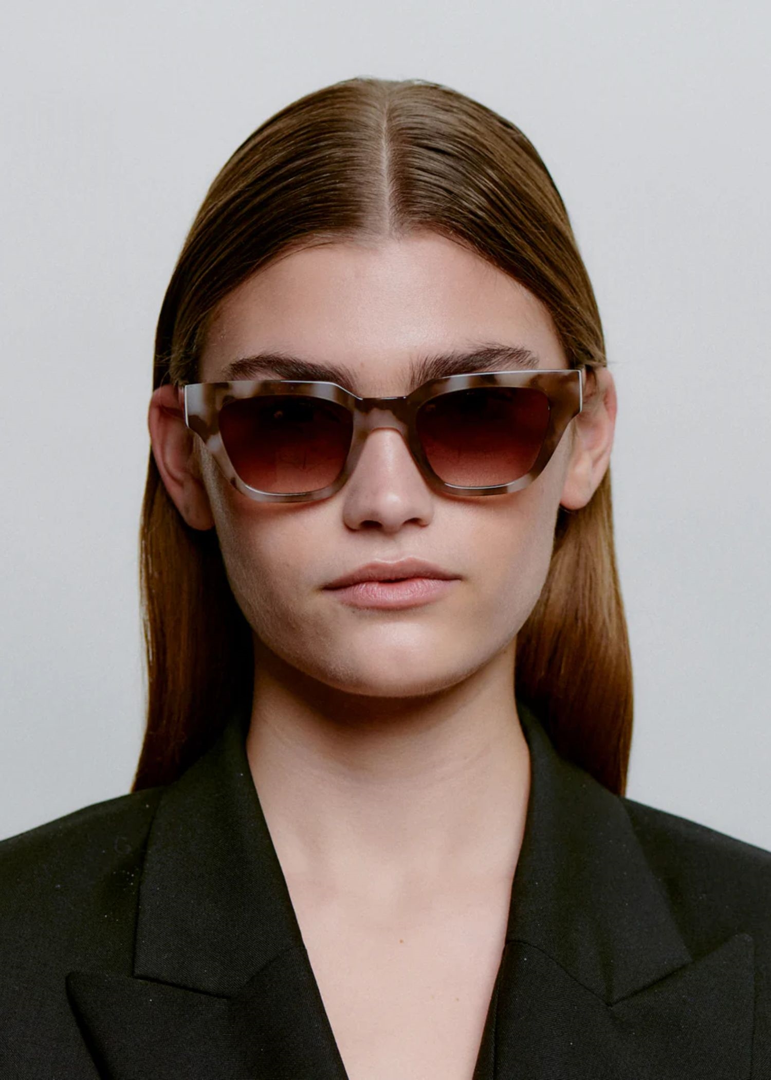 Kaws - Cookie Dough er en mere markant solbrille med tydelig profil, hvor formen gør en stor del af arbejdet. Den føles moderne og lidt mere statement-præget, men stadig med den rene balance, der gør den brugbar til hverdagen. Kaws er oplagt, hvis du vil have en solbrille, der giver karakter – uden at blive overdrevet.