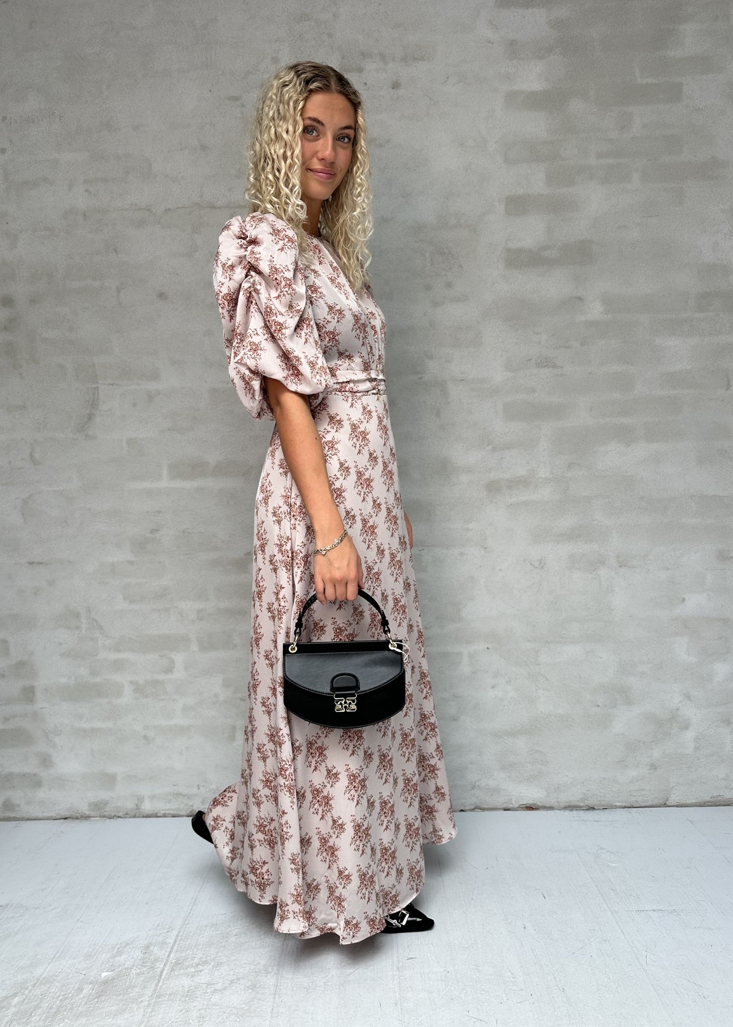 Smuk gammelrosa kjole fra Neo Noir med brun/rosa blometerprint.