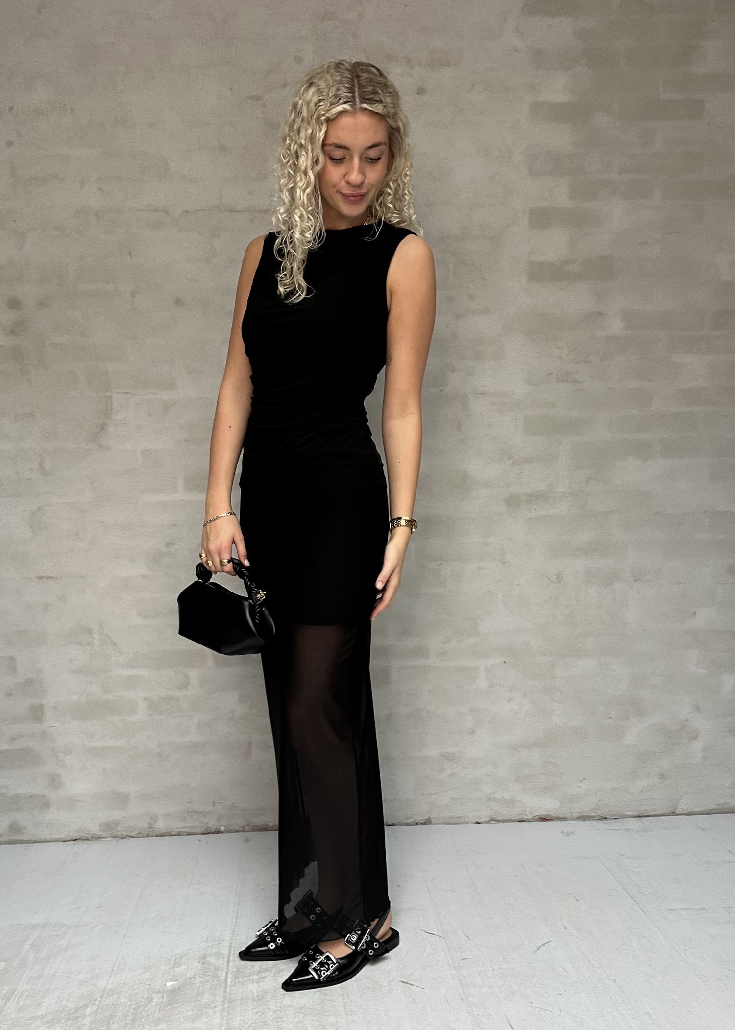 Sort mesh top fra Neo Noir i en let polyester kvalitet med stretch. Toppen har bådudskæring, samt elastik/rynke detaljer i siderne.