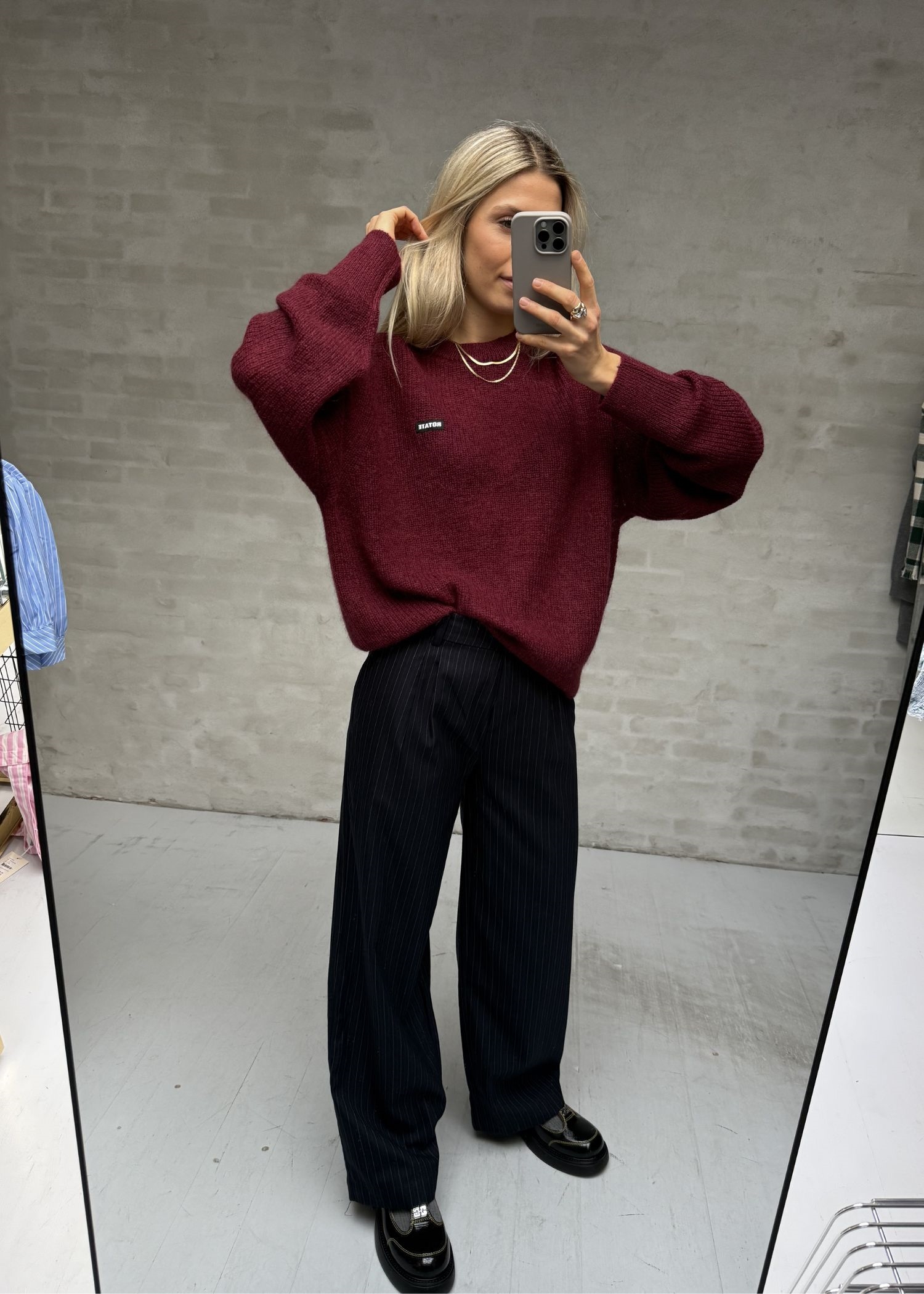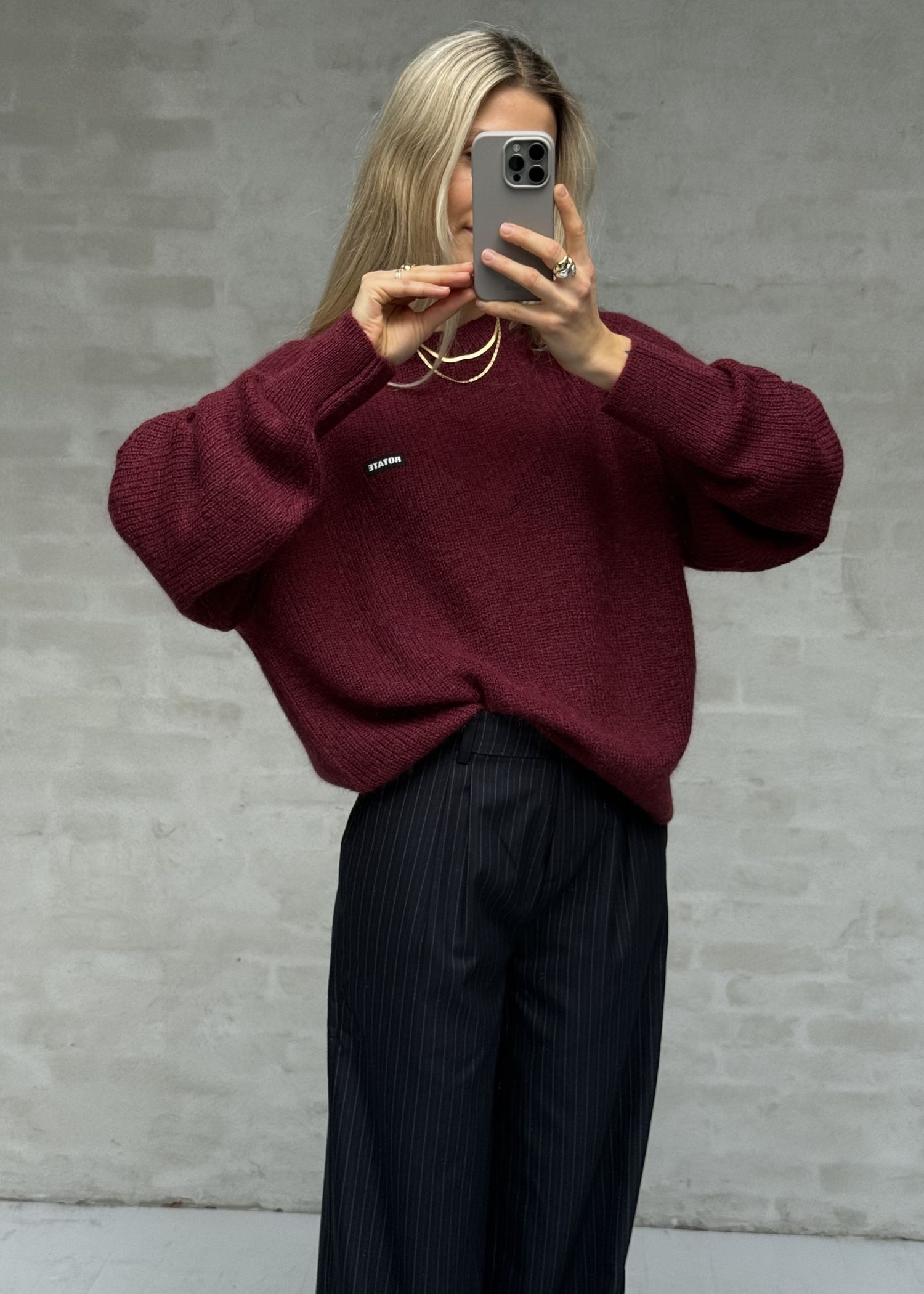 Vinrød strik fra Rotate i en let strikkvalitet med løs pasform, samt logo på brystet.