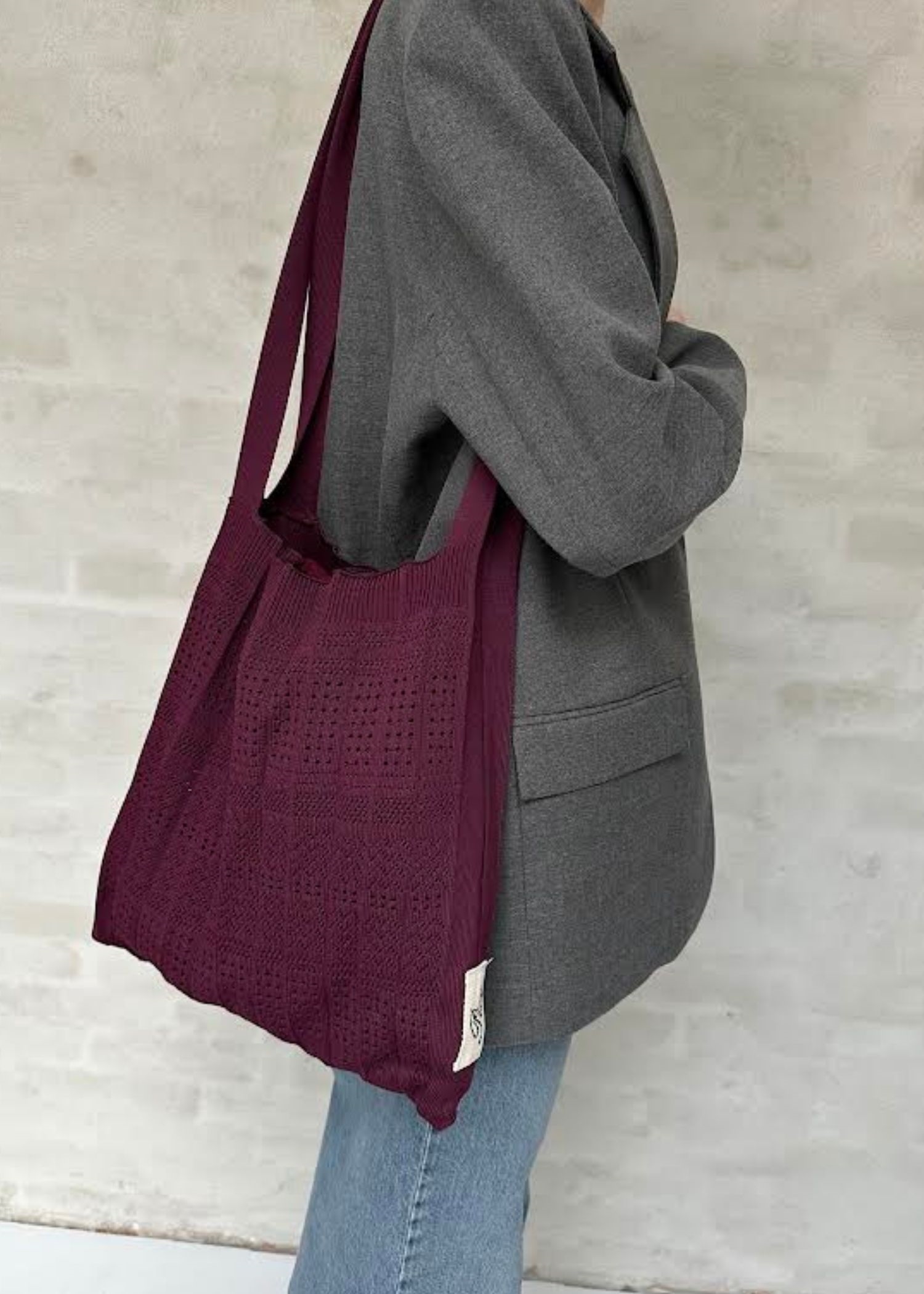 Plum farvet net fra Pico kombinerer funktionalitet med et stilfuldt design, ideel til både stranddage og shoppingture. Tasken er fremstillet af holdbart vævet polyester og har en praktisk forlænget rem så den kan bruge som crossbody.