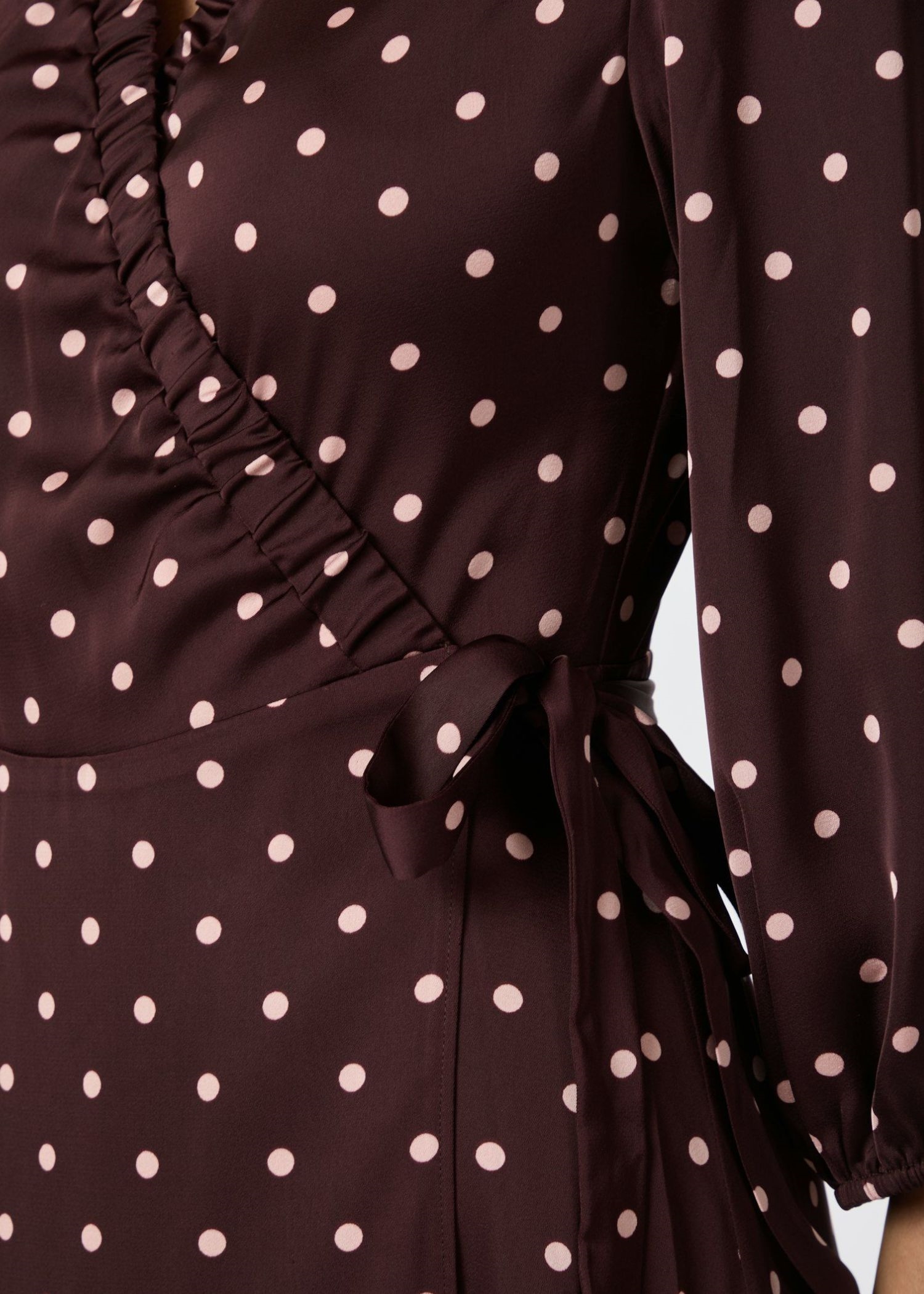 Bordeaux wrapkjole fra Neo Noir med v-udskæring med elastikkant, samt 3/4 ærmer med elastikkantafslutning.