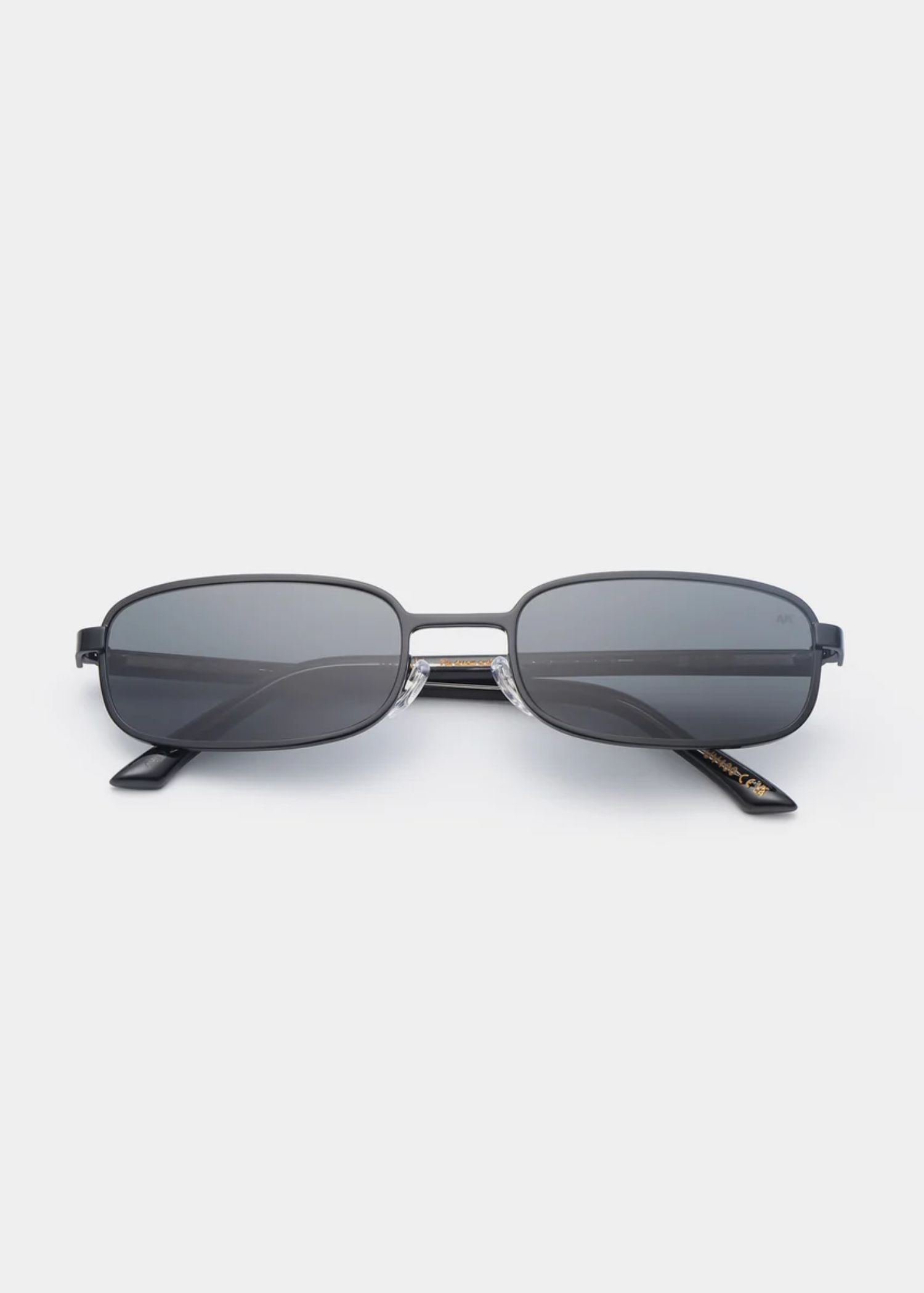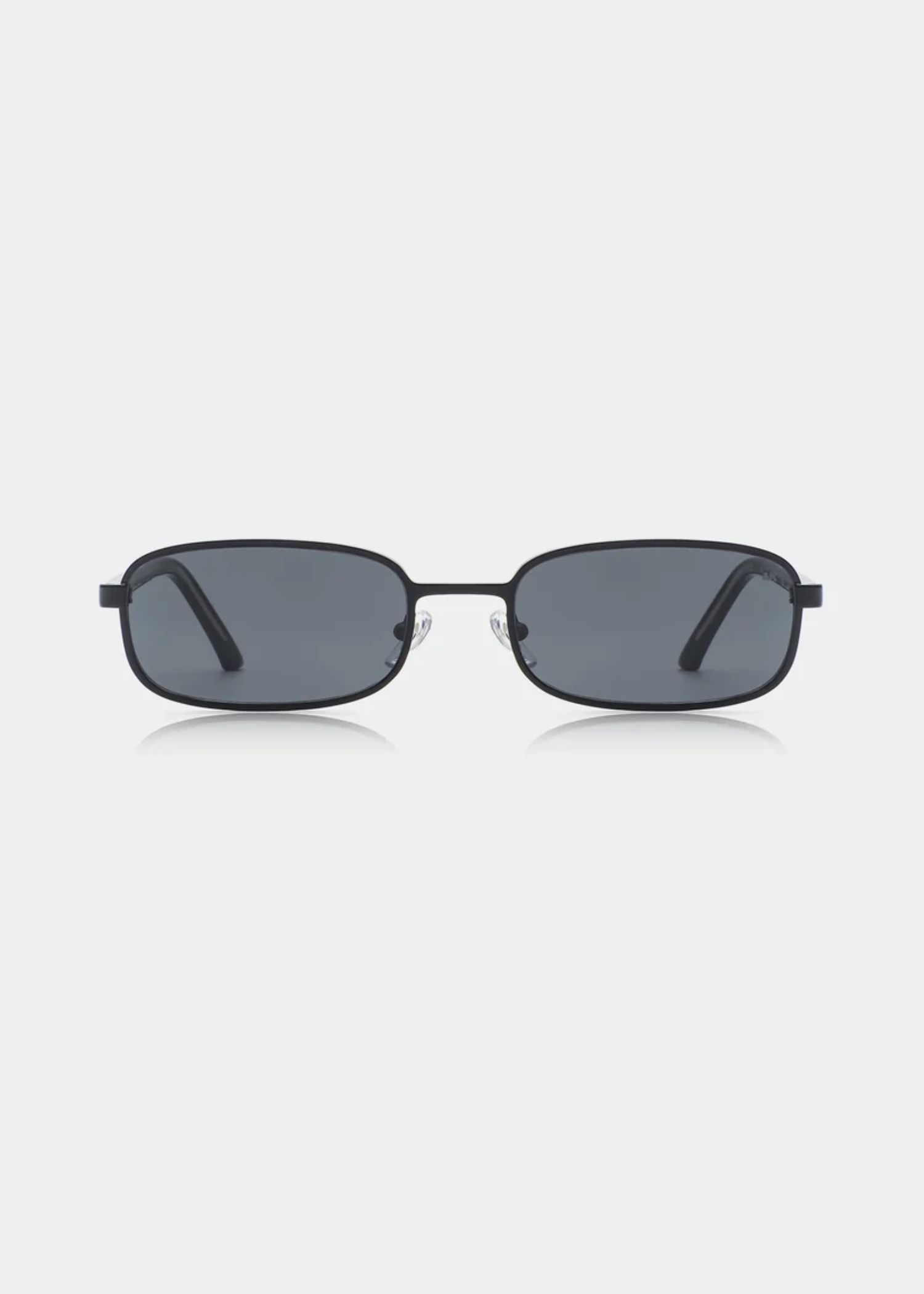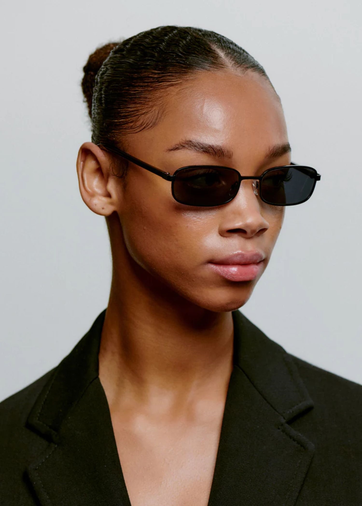 Noah - Black er et klassisk unisex-design med et tydeligt 90’er-nik og et køligt, minimalistisk udtryk. Den smalle metalramme og de små, firkantede linser giver et let og elegant look, der fungerer både til små og større ansigter, uden at brillen virker dominerende. Noah er til dig, der vil have en stilren solbrille med skarp silhuet og et mere “clean” statement