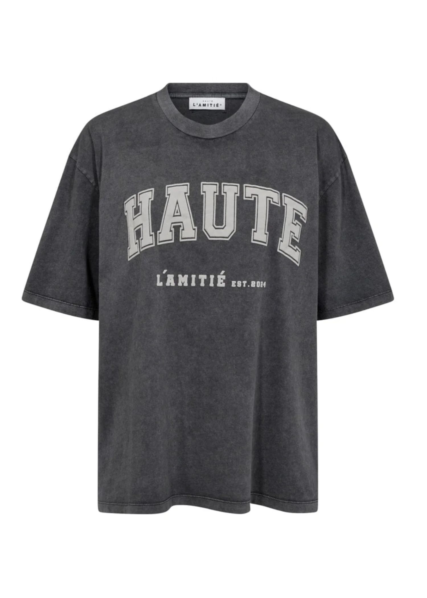 Oversize tee fra Haute L'Amitie i en sort/koks vasket bomuldskvalitet med lysegråt logo på brystet.