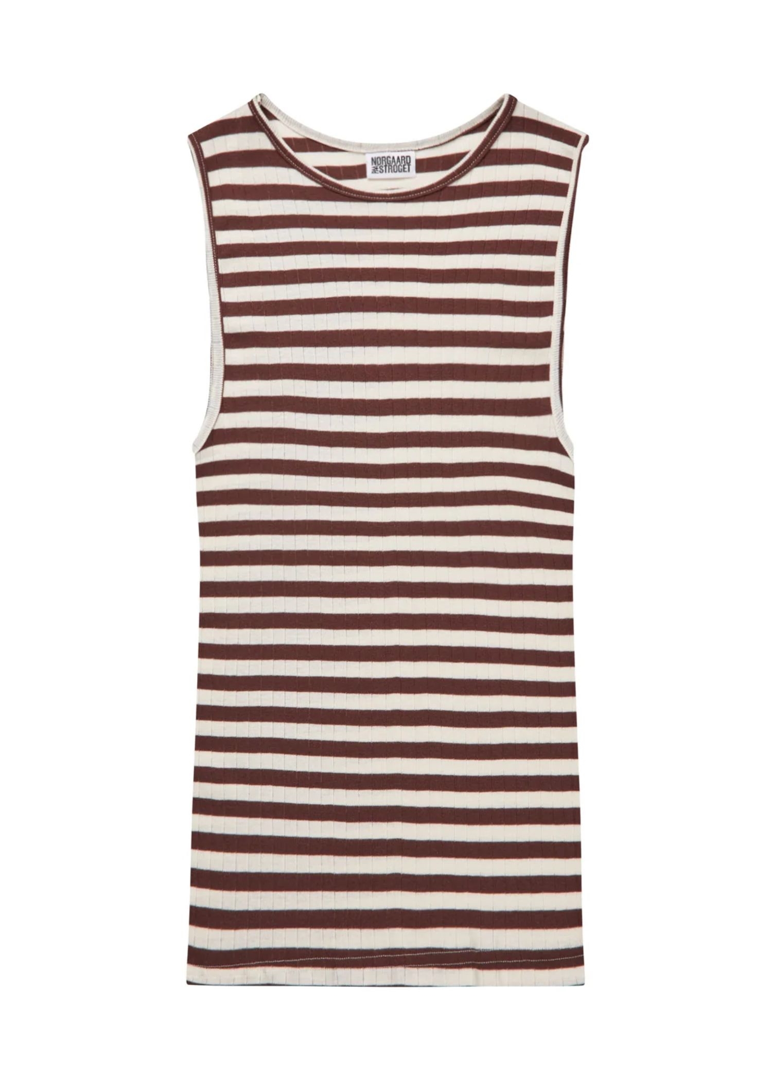 Mørkebrun/Off White stribet rib tank top fra Nørgaard paa Strøget.