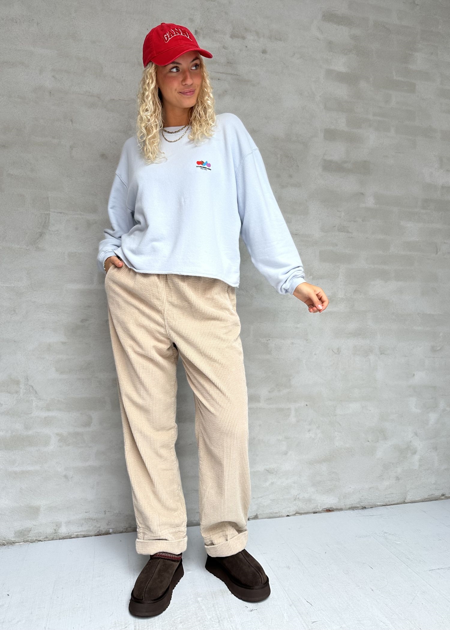 Cool sandfarvet fløjls buks fra American Vintage med elastik i taljen og lommer i siden.