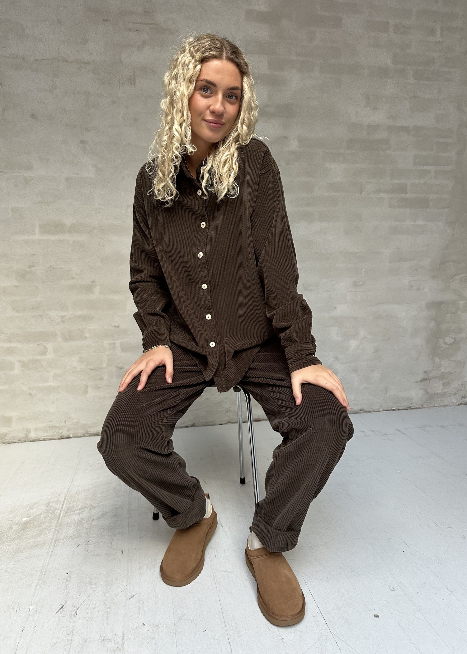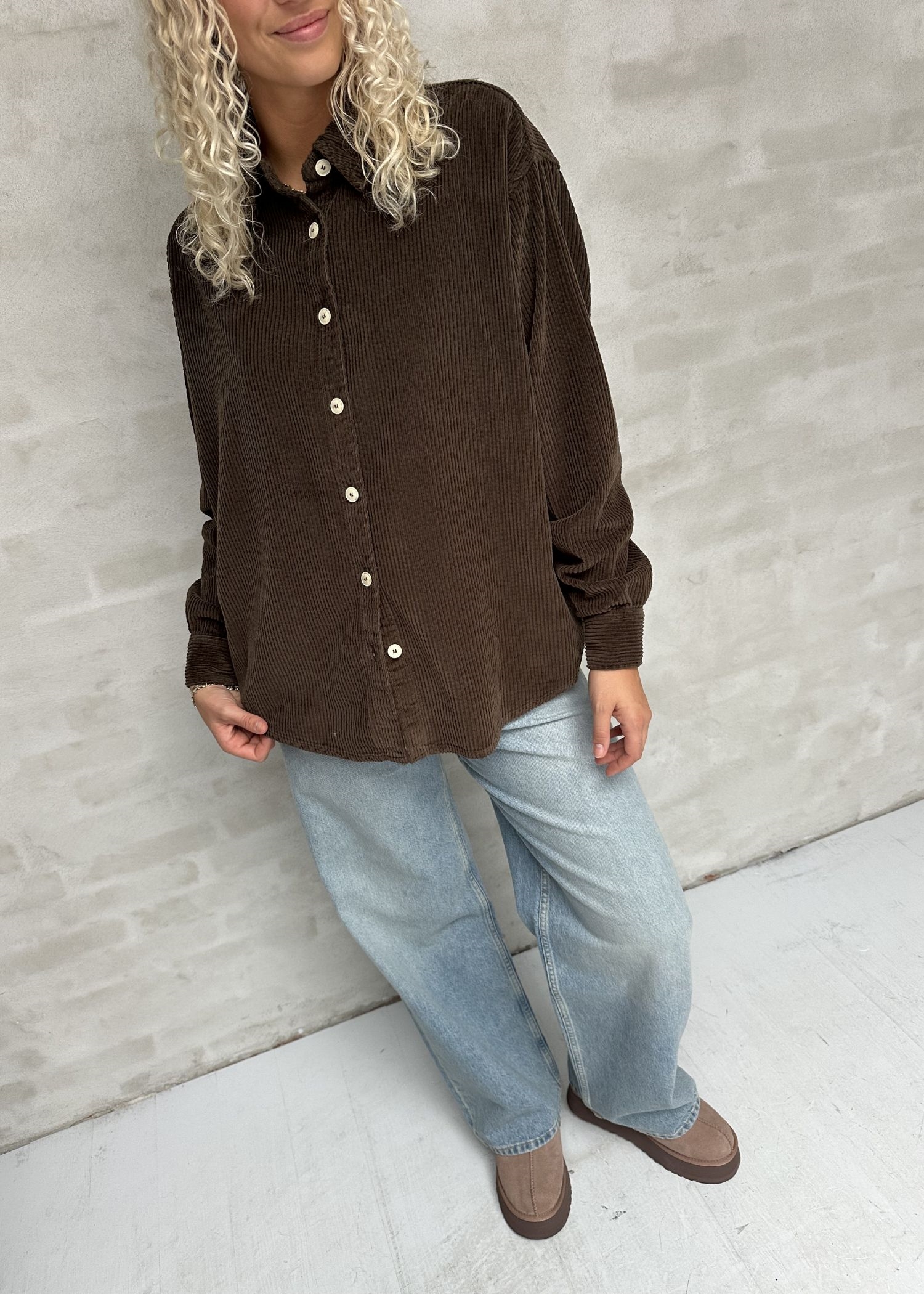 Mørkebrun fløjlsskjorte fra American Vintage i en blæd bomuldskvalitet.