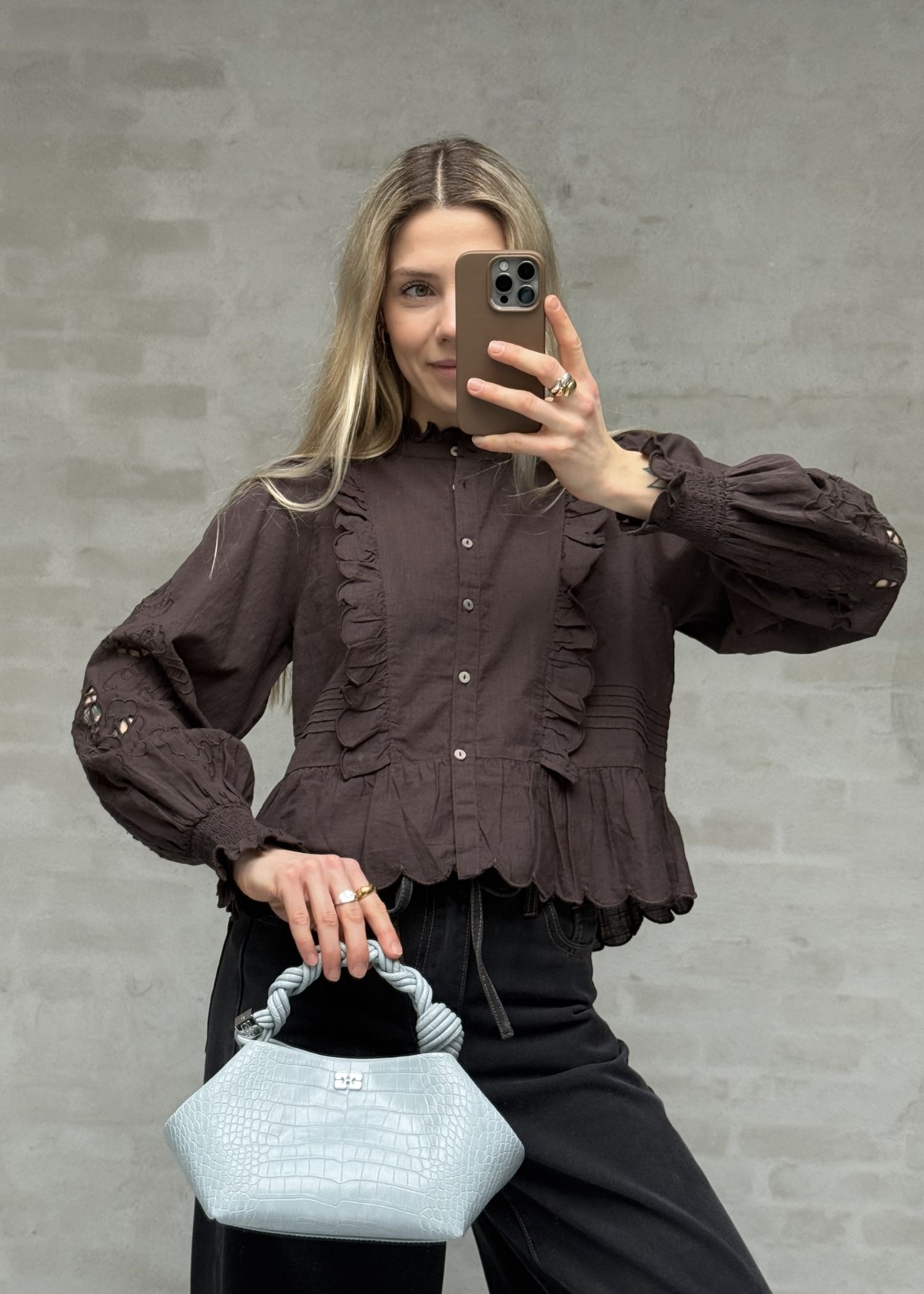 Petrine embroidery bluse Mørkebrun Neo Noir