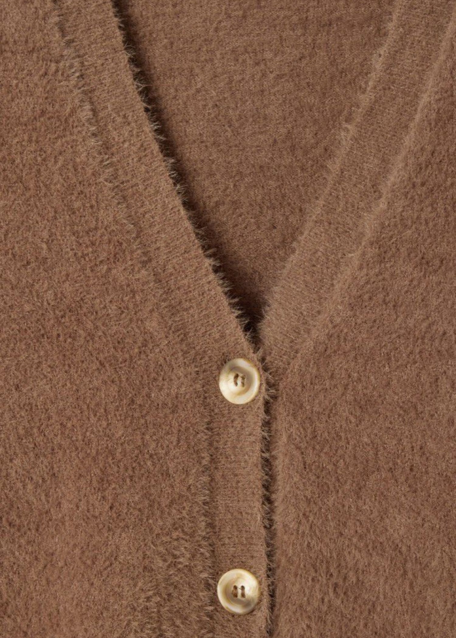 Brun fluffy chenille strik cardigan fra American Vintage med stretch.