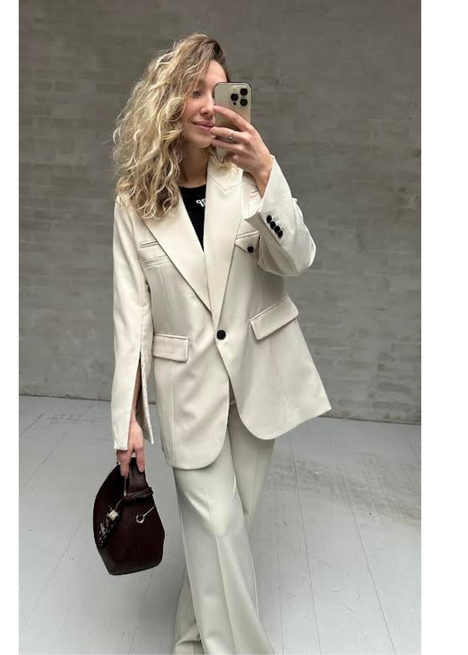 Off white oversize blazer fra Haute i en let kraftig polyesyer kvalitet med stretch.