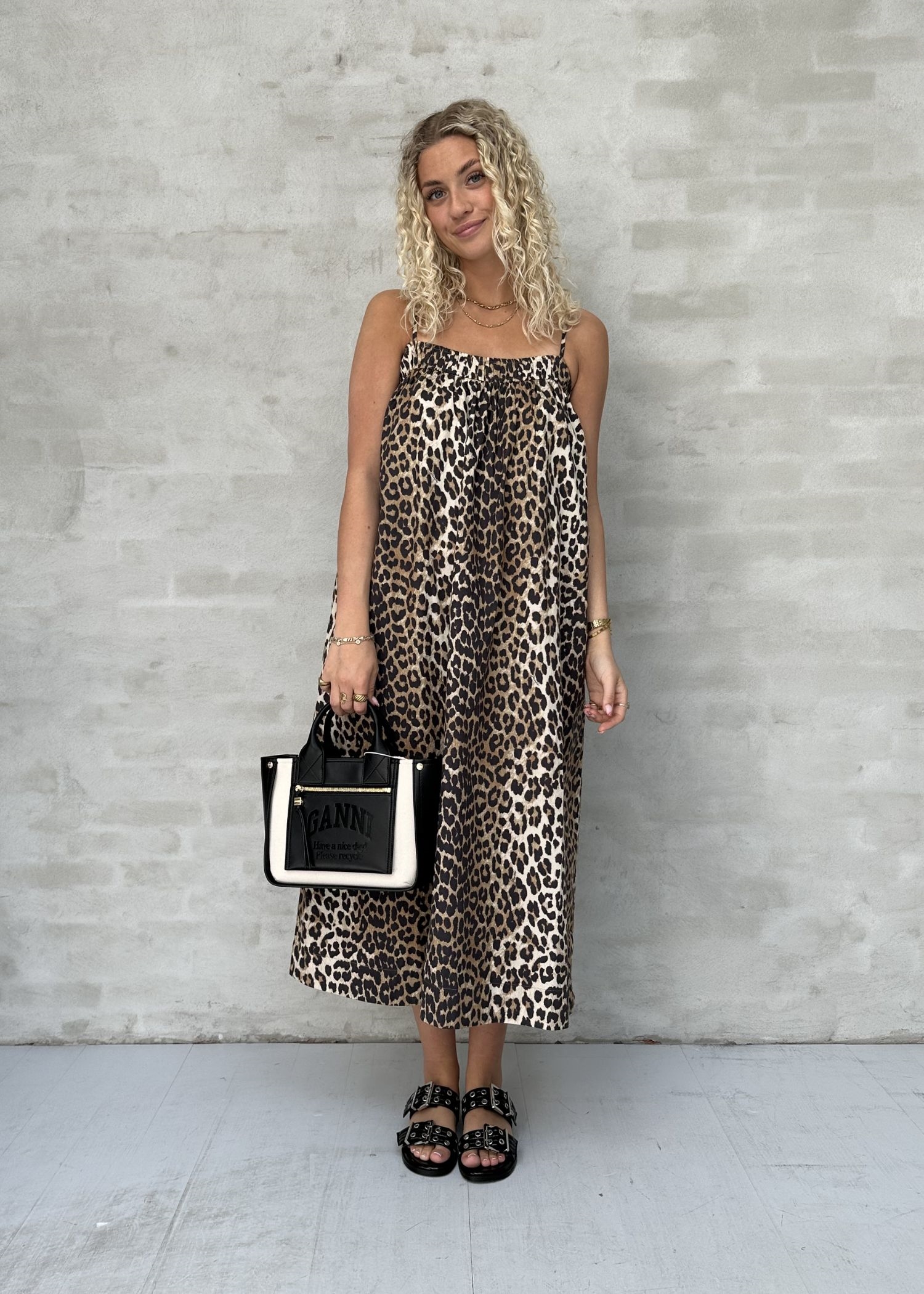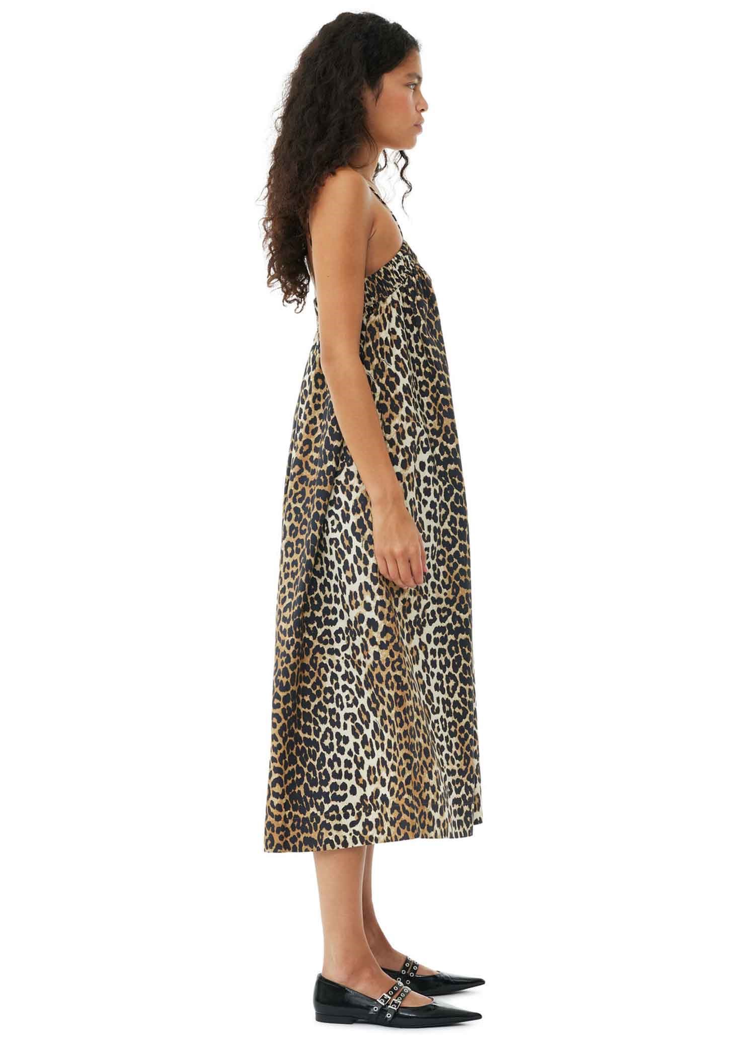 Printed Cotton midi strap kjole Leopard F9354 Ganni