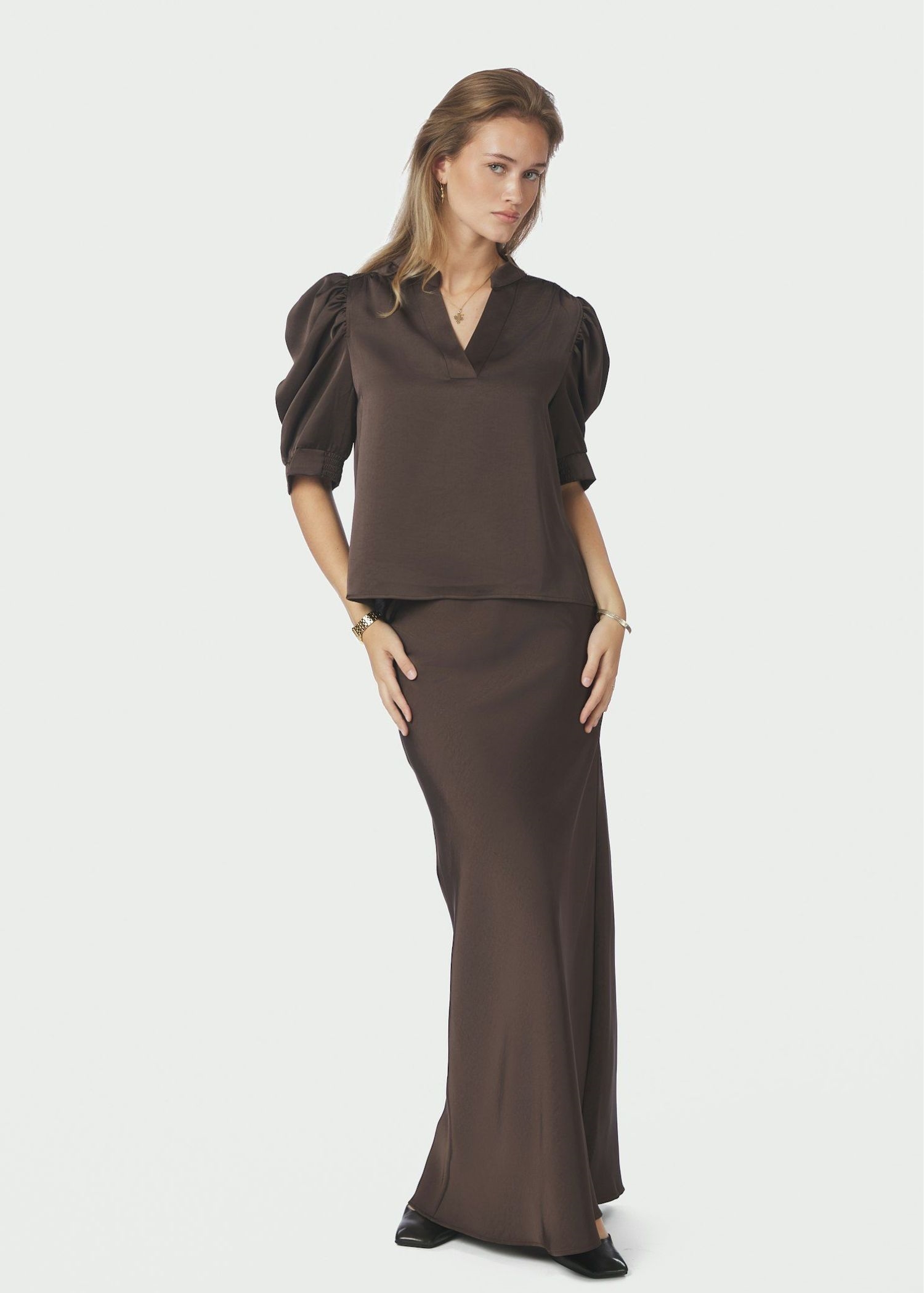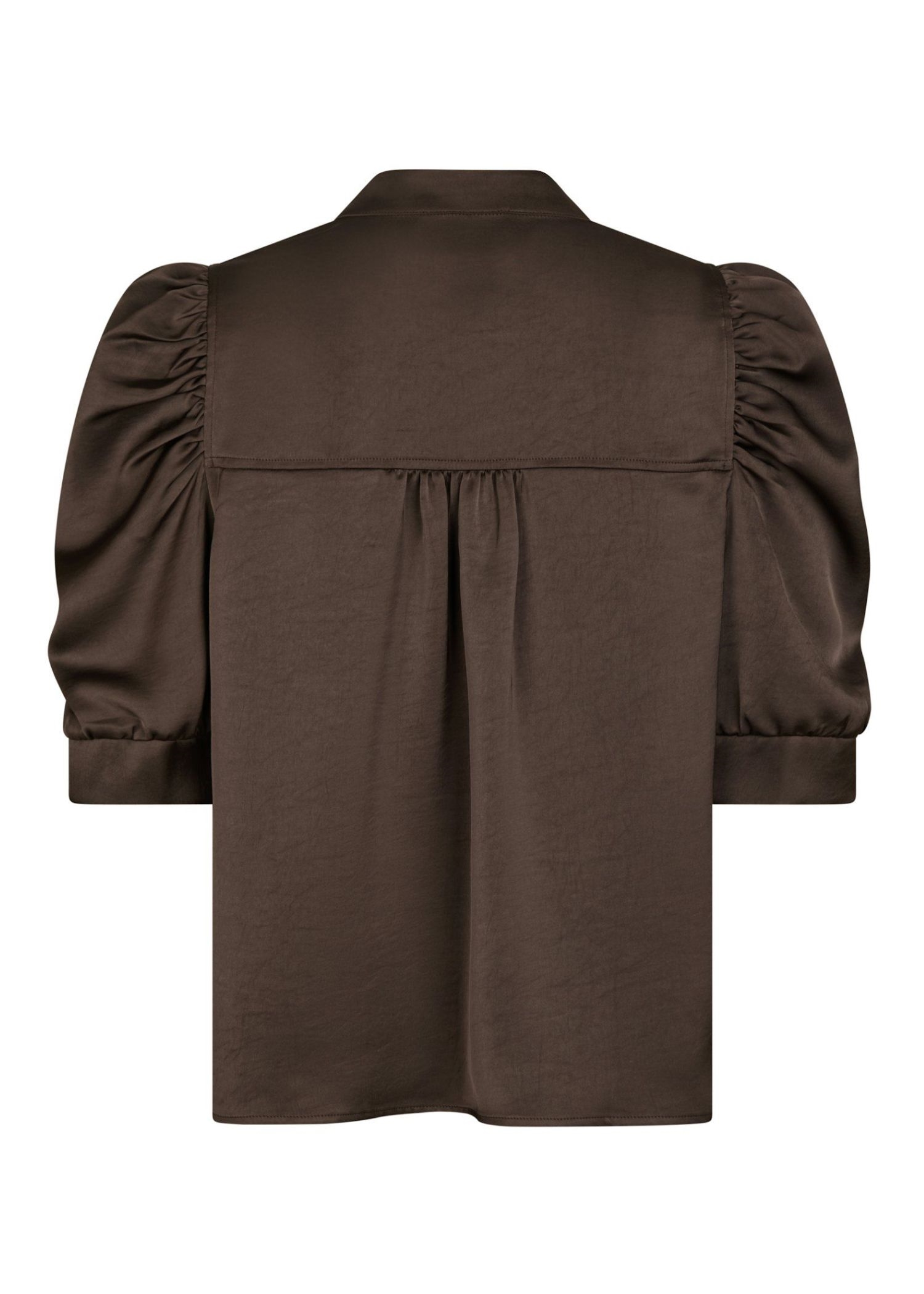 Roella heavy sateen bluse Dark Brown Neo Noir